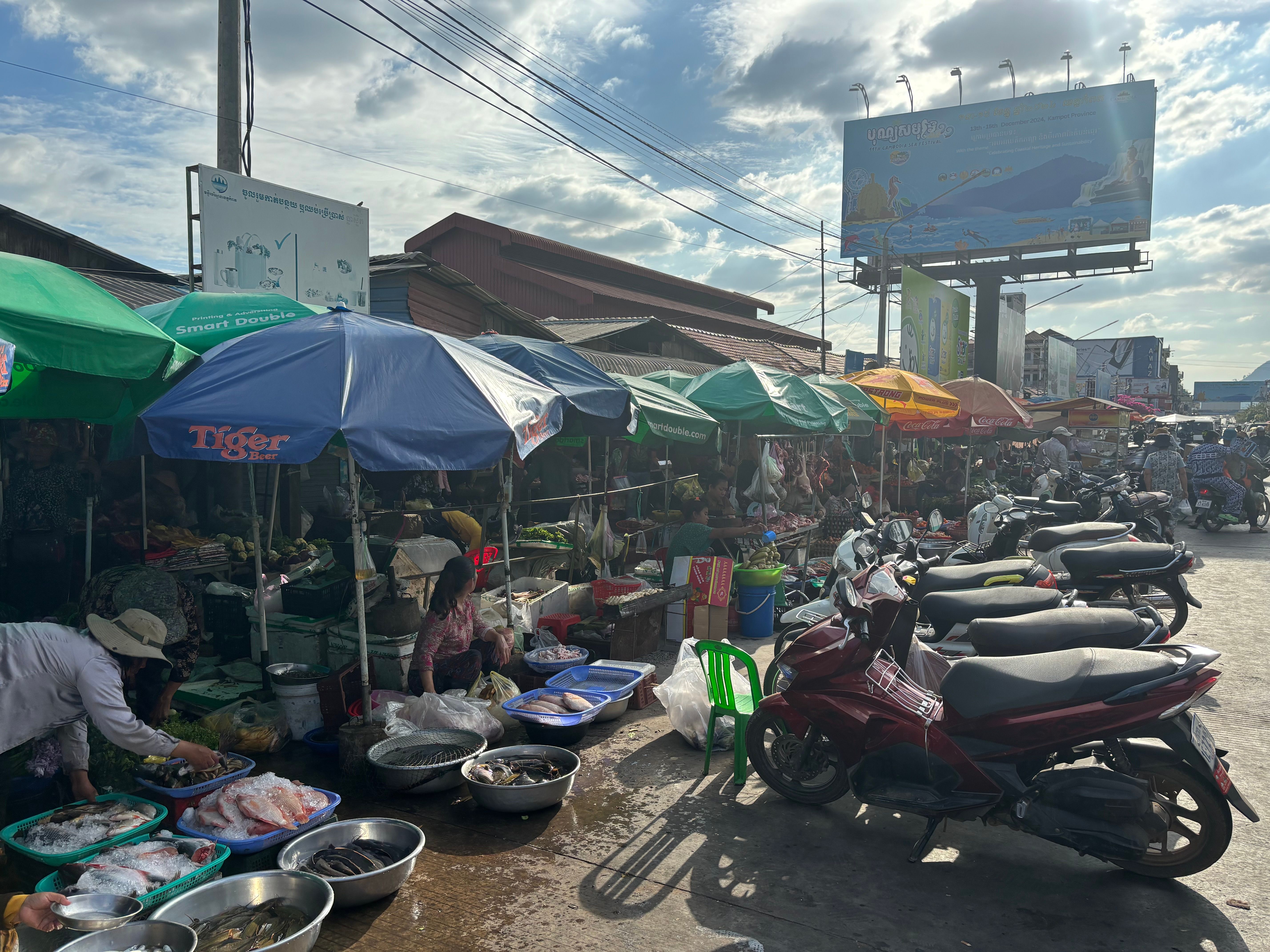 After learning about the things that happened, we took a bus to the southern city of Kampot, our Christmas destination. Here our accommodation was a cozy bungalow-studio, one of many that belonged to the same residence. It was located a 10 minute tuktuk ride away from the city center in a peaceful location by the river. We arrived on Dec 23rd, the day before Christmas Eve.