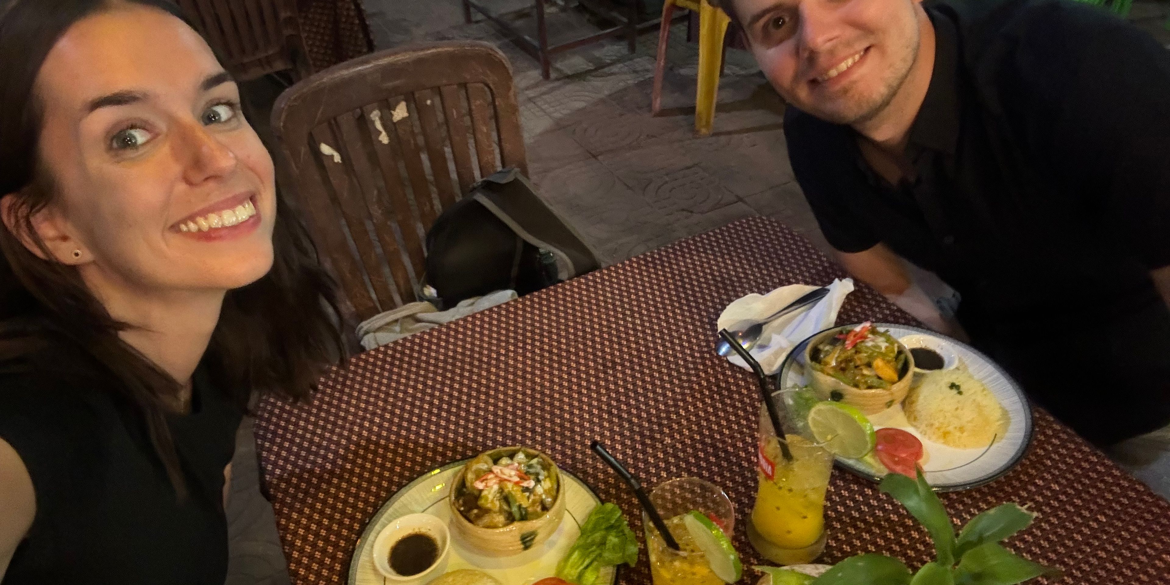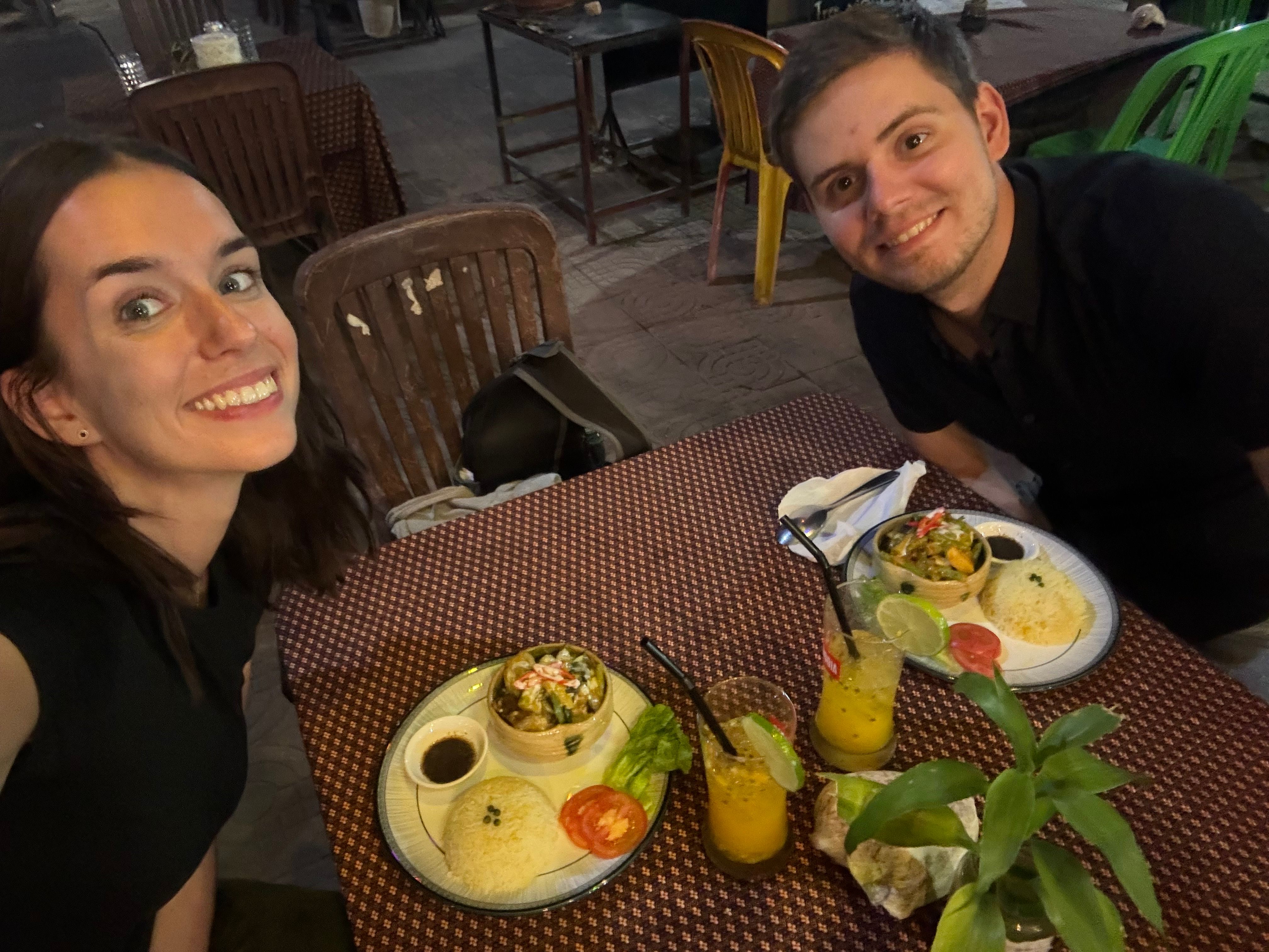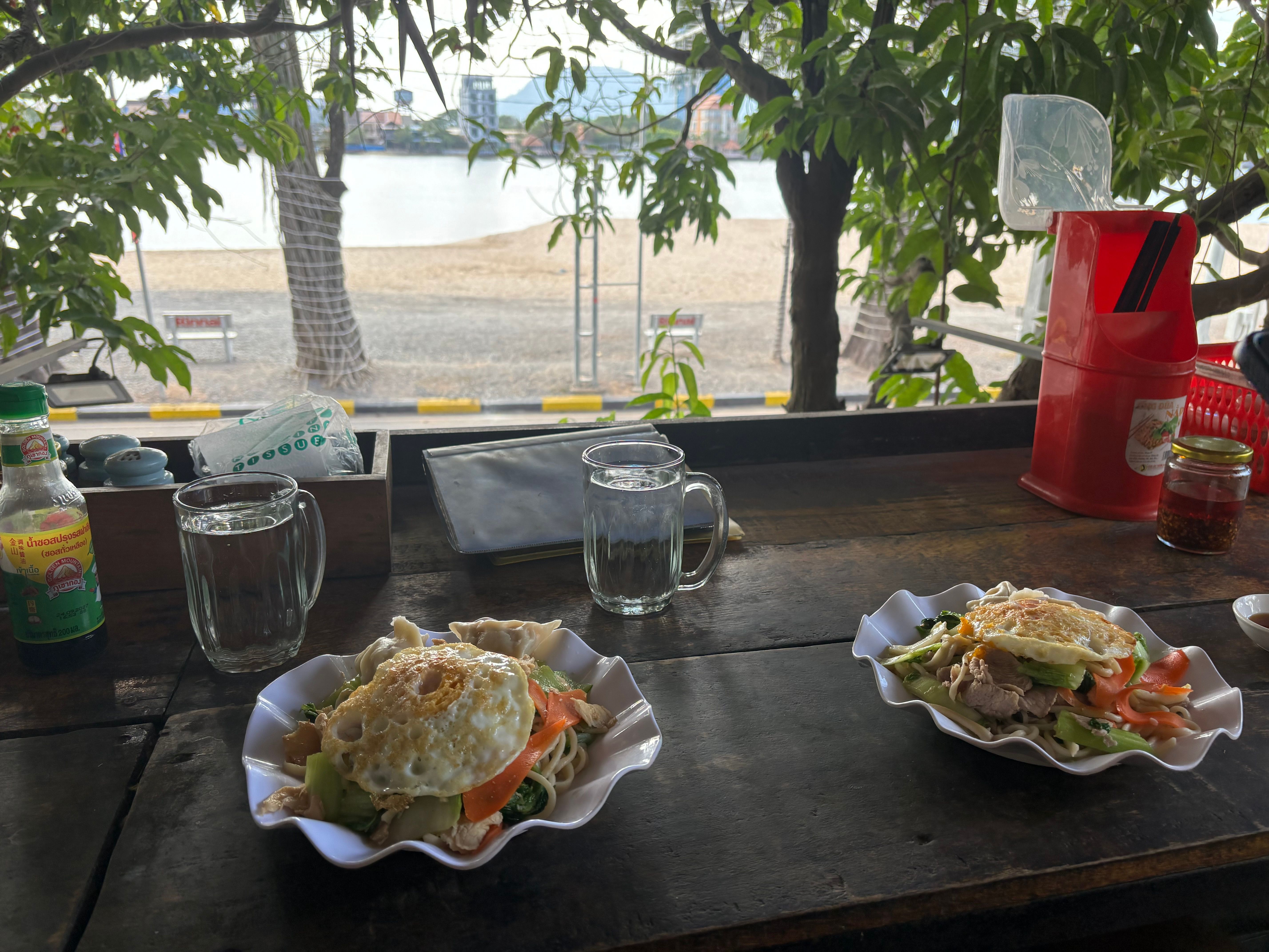 We grabbed a nice street food dinner on our way, some noodles and a meat dish. We later found out it was called Lok Lak, one of the national dishes. Meat in a tasty sauce served with rice and a pepper-lime mixture. A weird combination at first, but very delicious.