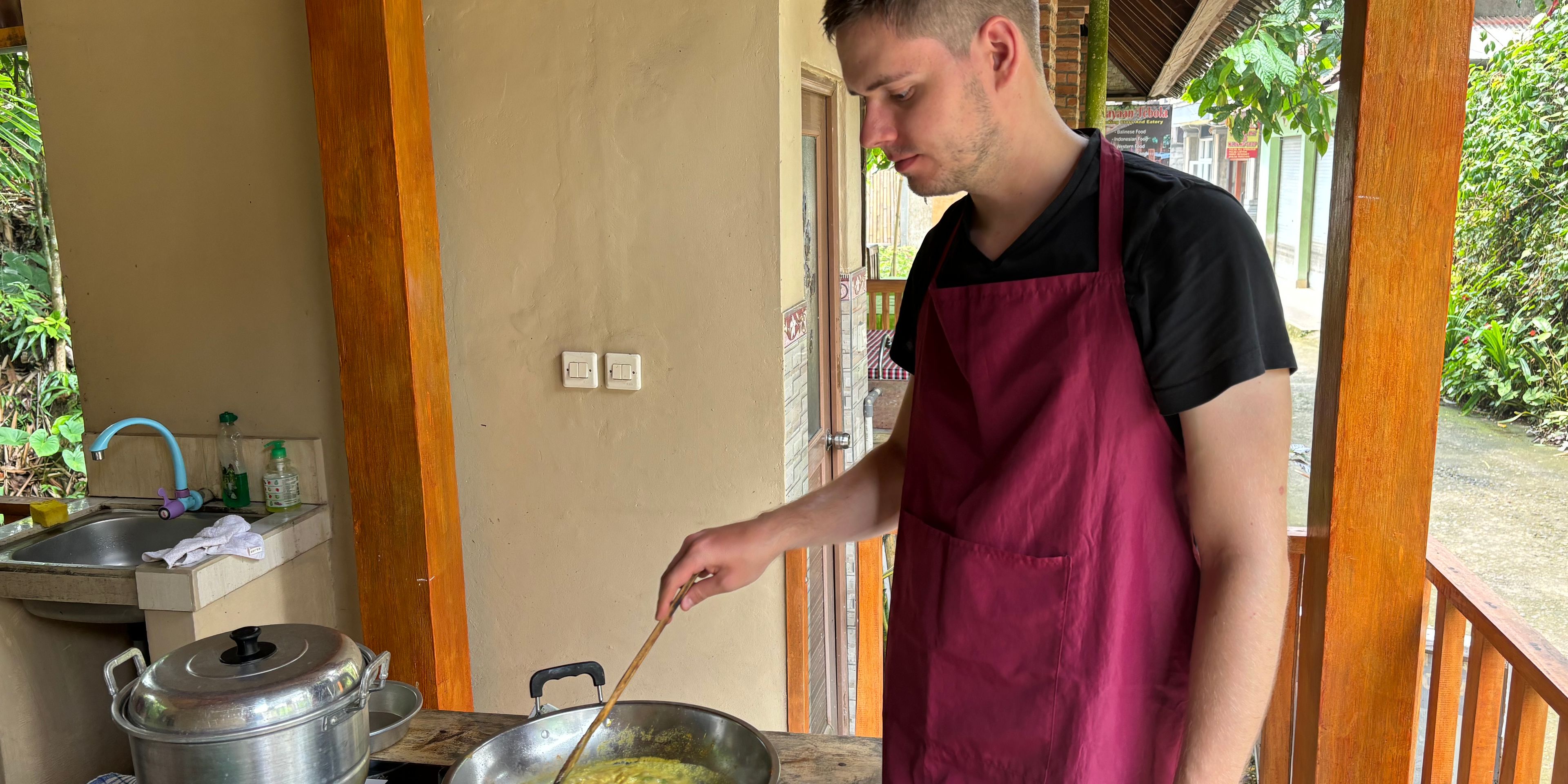 We spent most of our arrival day exploring the neighborhood, and signed ourselves up for a traditional Balinese/Indonesian cooking class the following day. It was the first cooking class I've ever done, but it was completely worth it. Experiencing the creation of the local flavors first hand, and learning about the ingredients and methods is fascinating. With only minor modifications in the spices and seasoning, you enter a completely different cuisine, but a very delicious one. We ended up making five different traditional dishes, that we feasted on afterwards as our lunch.