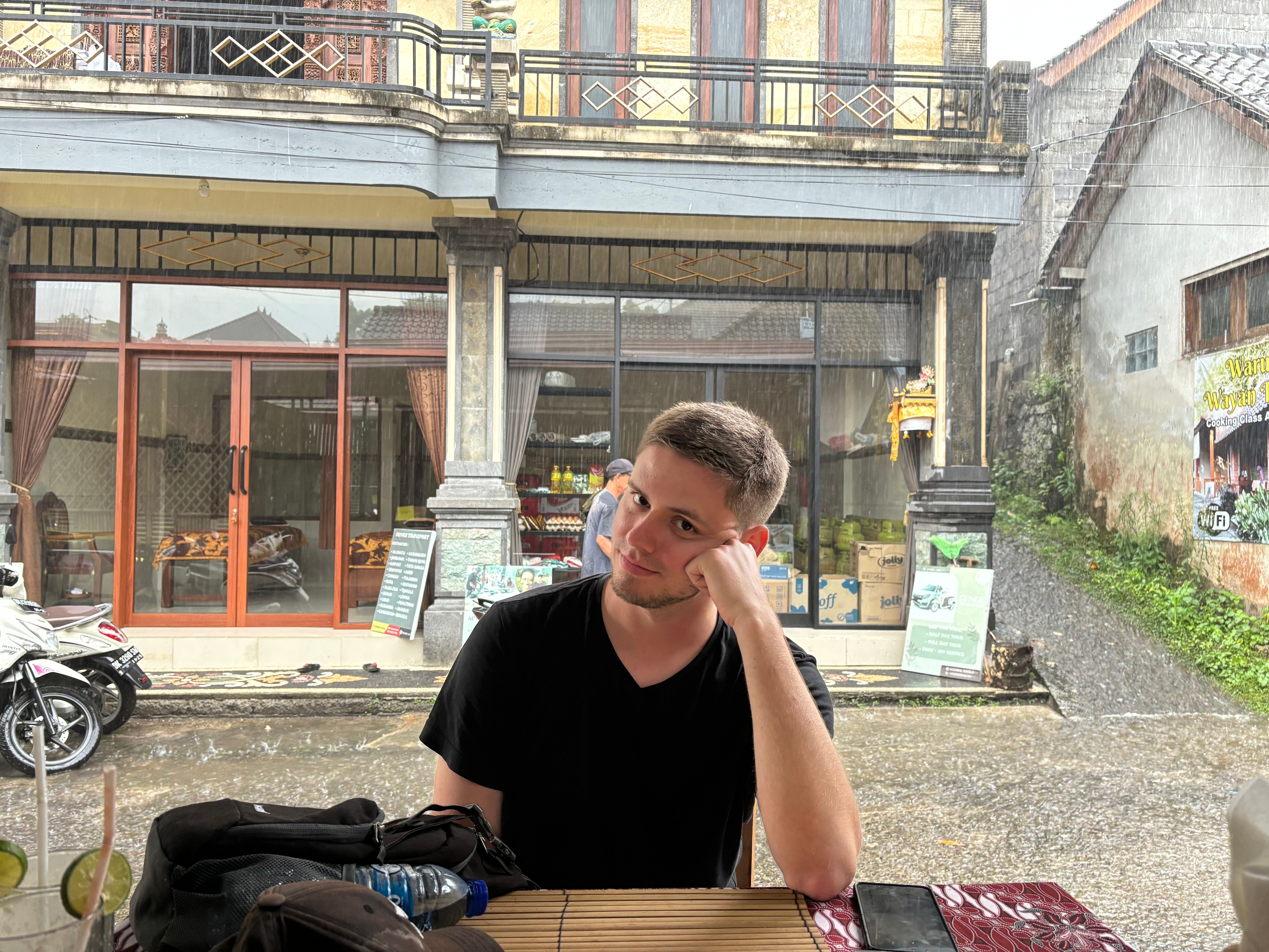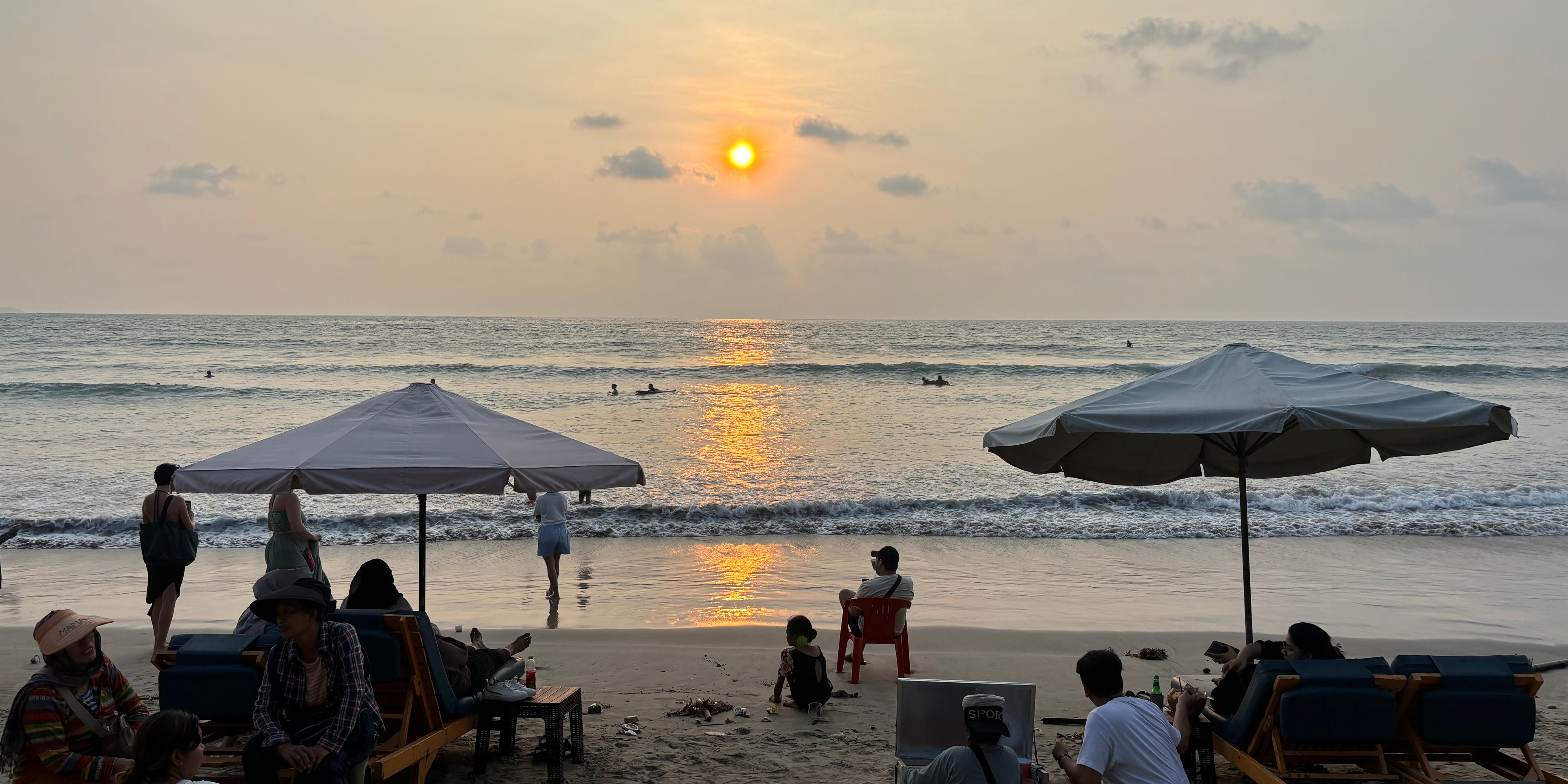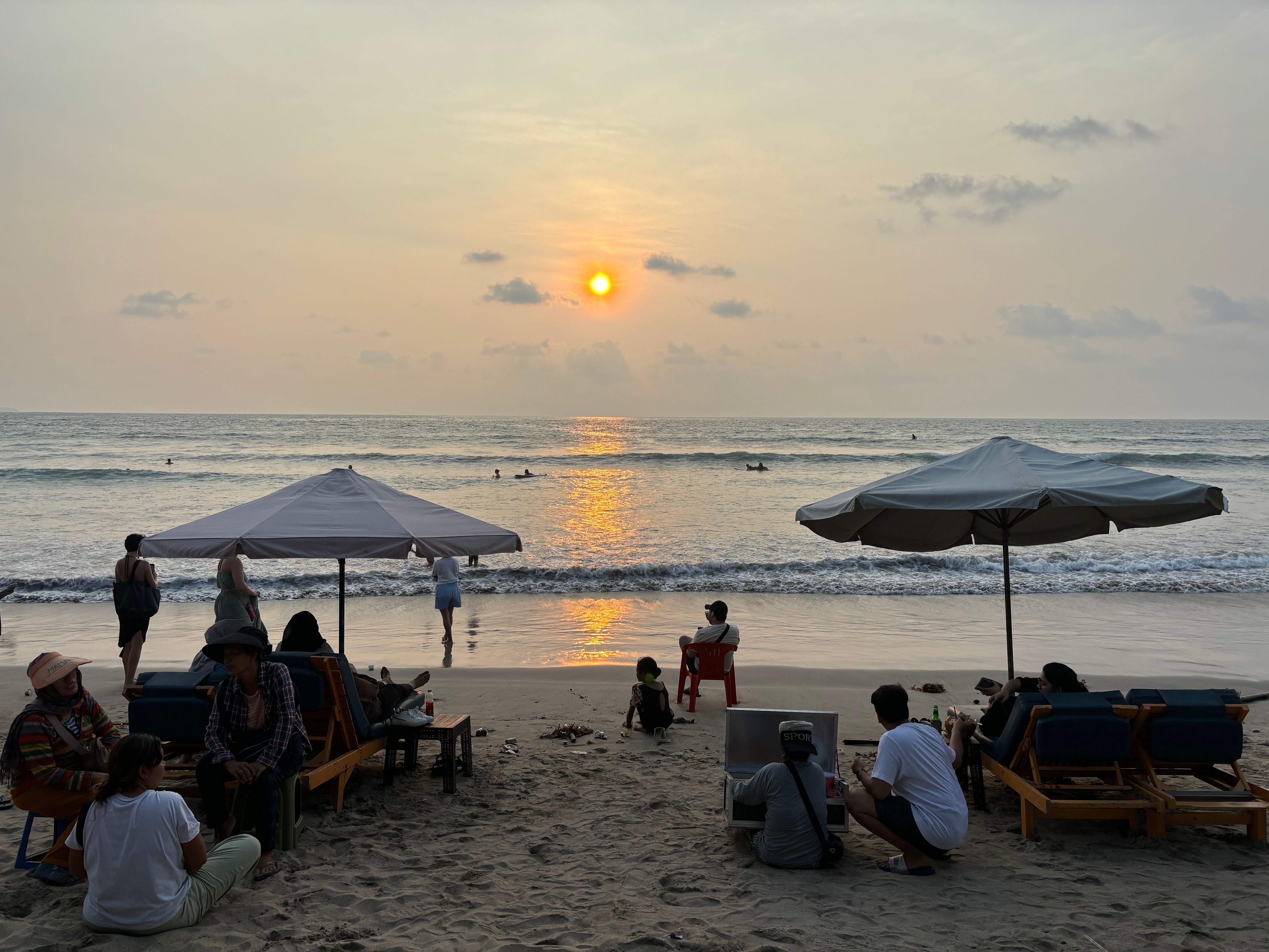 We stayed at the beach for the sunset hoping to have a nice view for our final Bali-evening. Unfortunately the clouds and fog made the view quite underwhelming, but still vibey. For dinner we tried out the local McDonald's, which to our surprise was way overpriced compared to what you could get at smaller restaurants. For reference, a double cheeseburger costs the equivalent of ~2,5€ which is the price of a main course in many places.