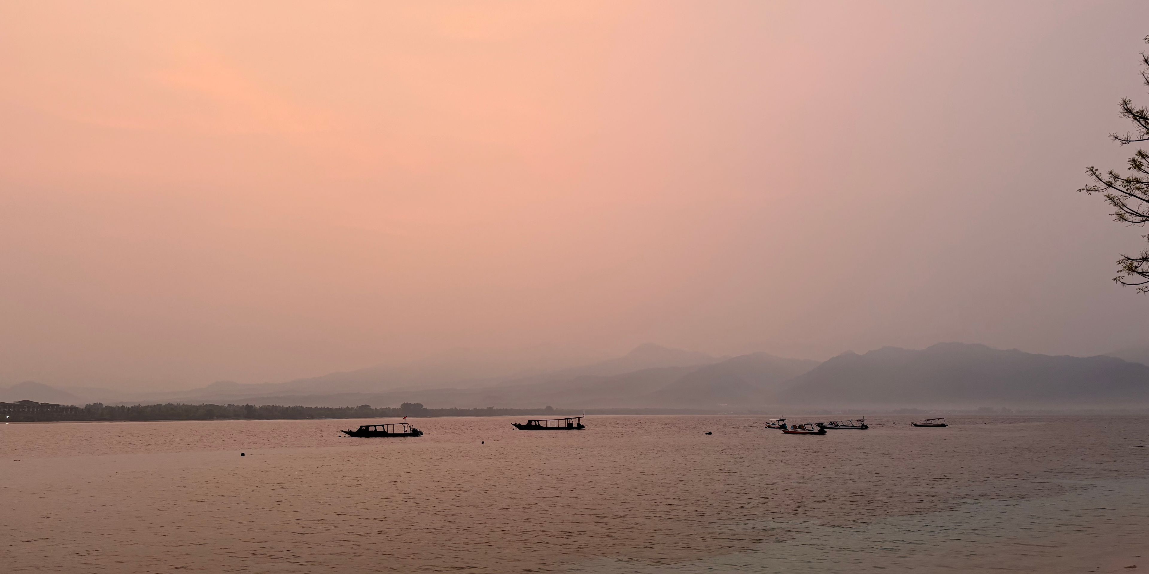 Luckily, eventually we got picked up by a car that took us to the bus, because the latter was already so late that it didn't have time to actually pick us up. The bus took us to the harbor where we hopped on a boat that took us on a cruise to our destination of Gili Air.