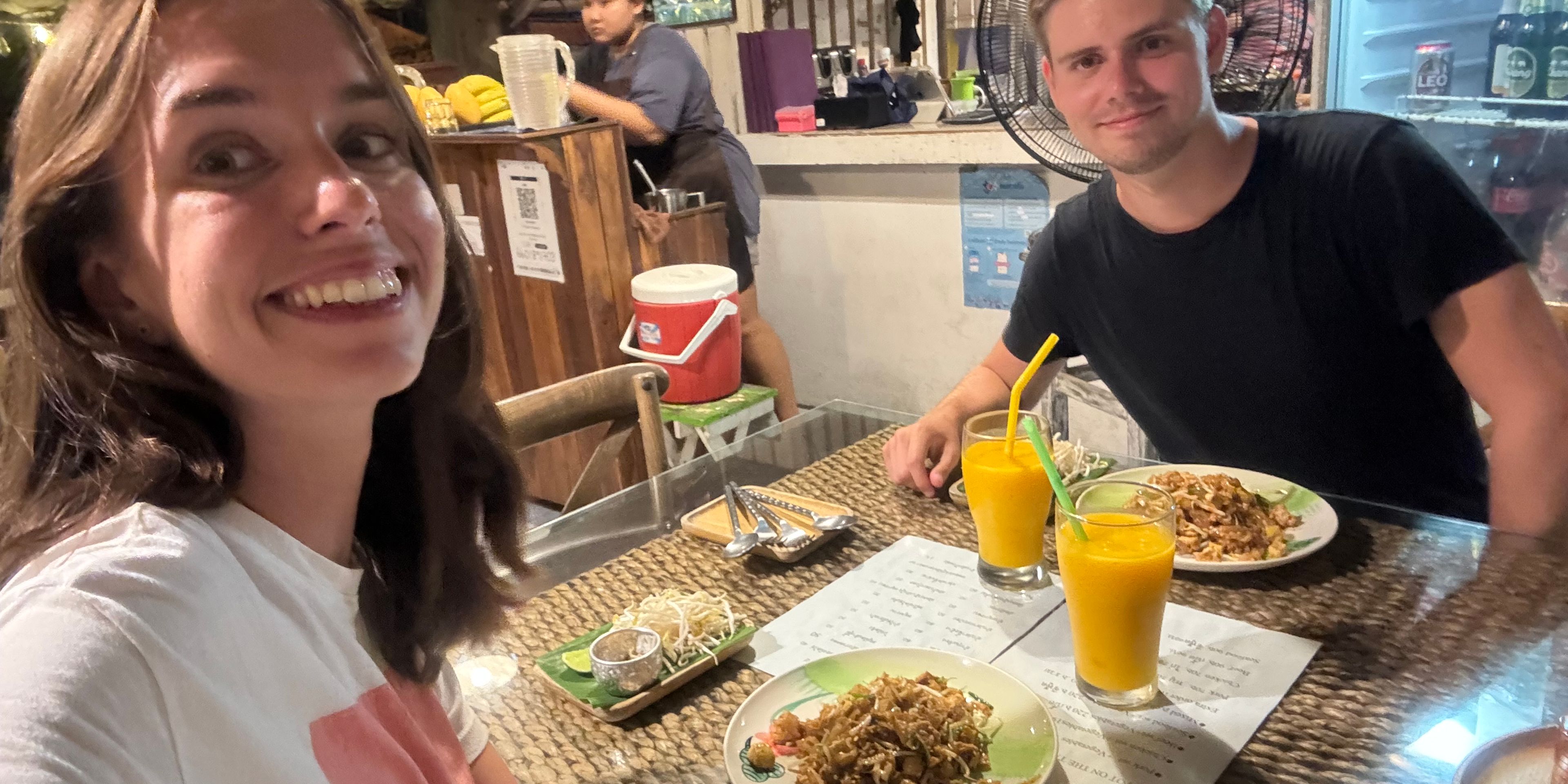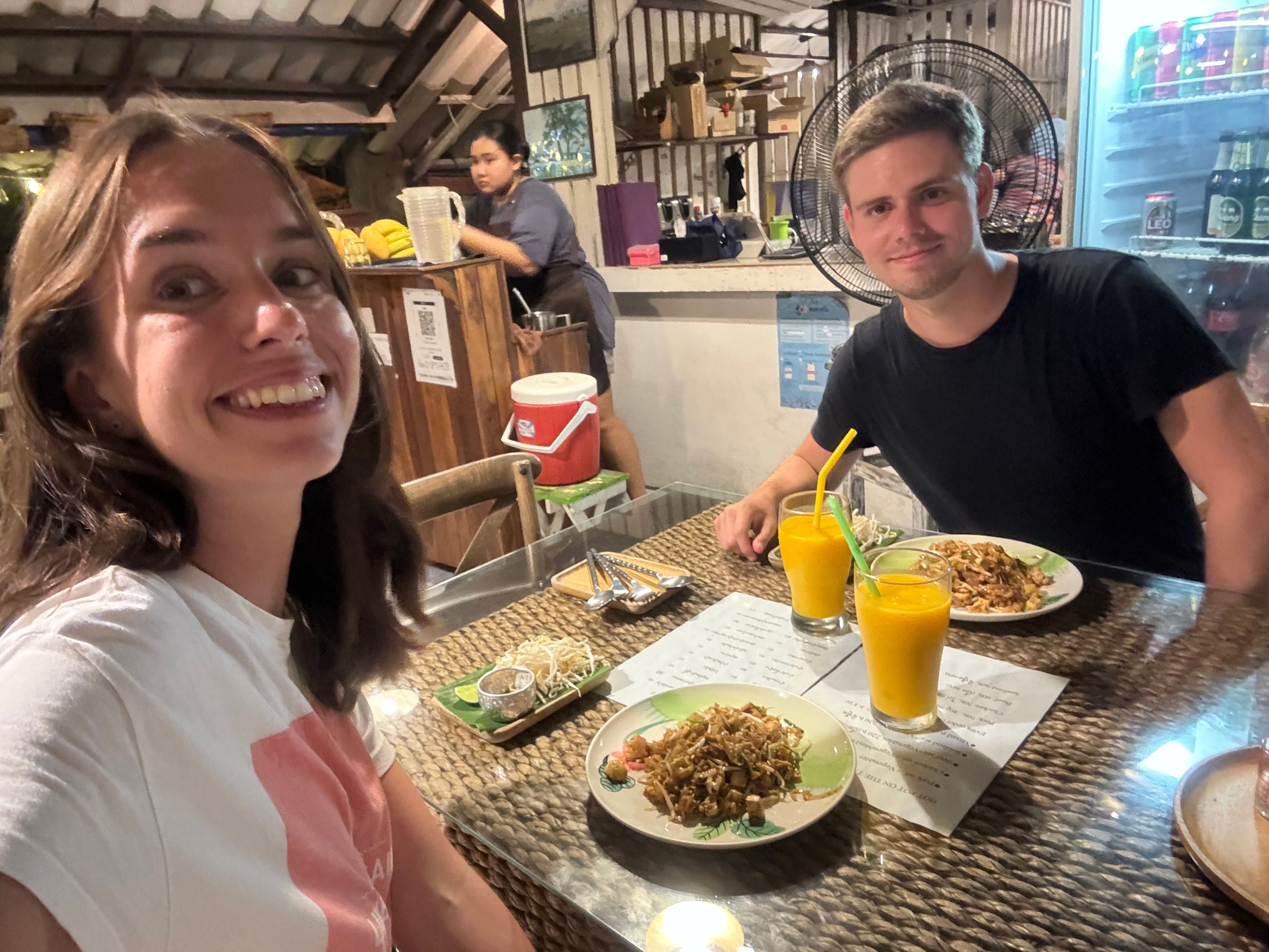The previous day we had found a lovely and slightly hidden restaurant that provided us with an excellent dinner (pad thai and basil rice). We were so happy with our experience we decided to frequent the same establishment for lunch and dinner again. To finish our Thai adventures we ordered our favorite juicy mango shake with a simple, authentic and delicious Pad thai. And with that it was time to say goodbye to Thailand... :(