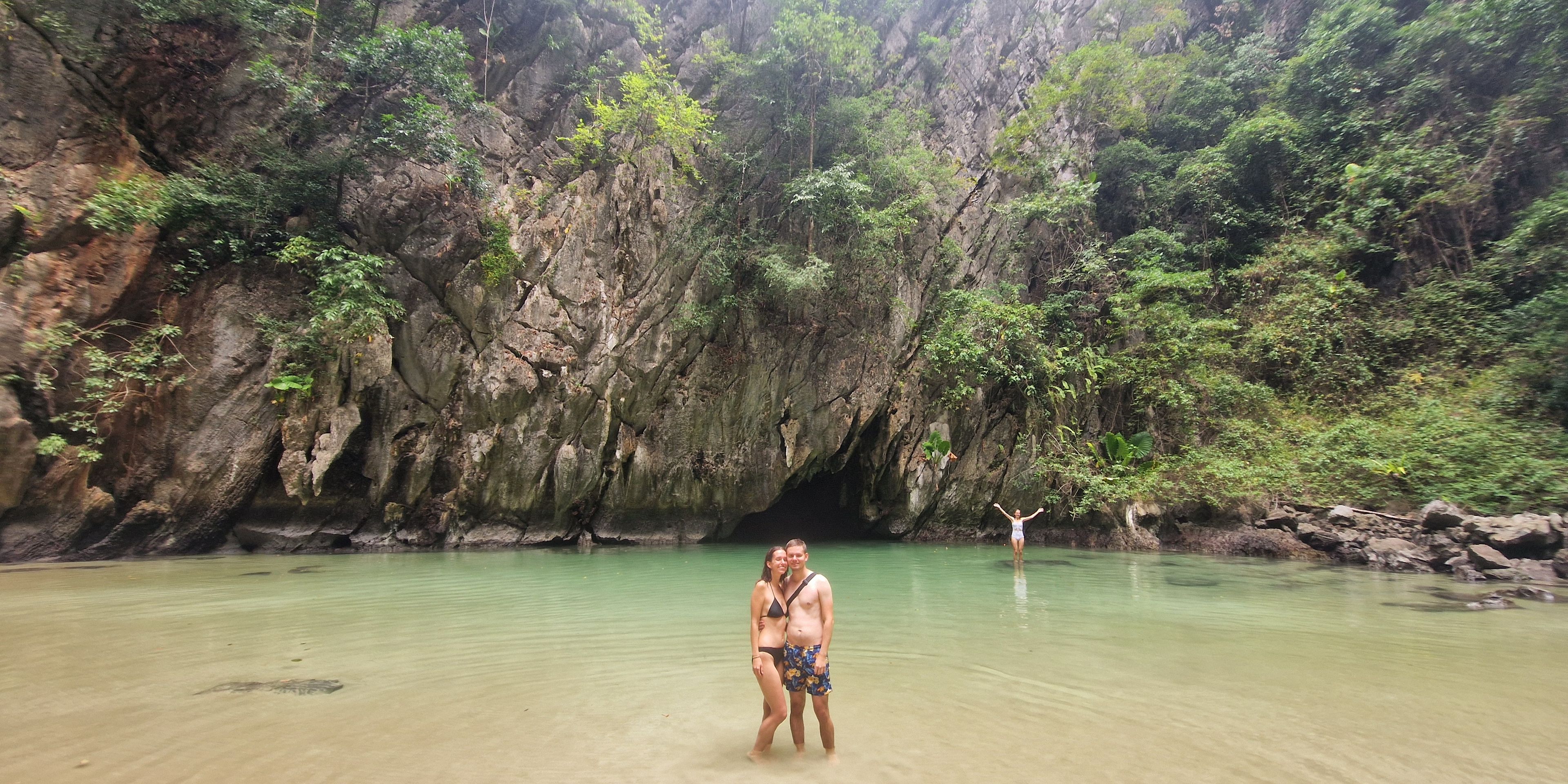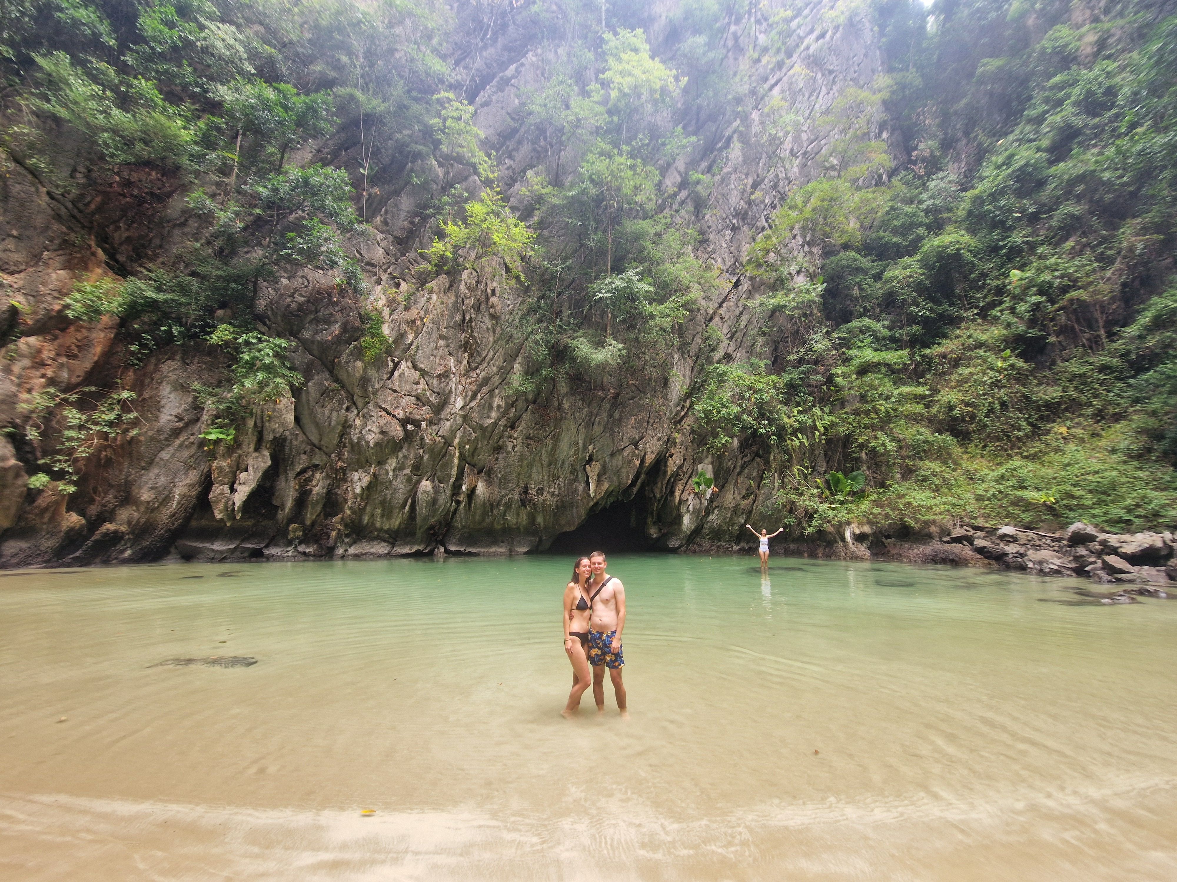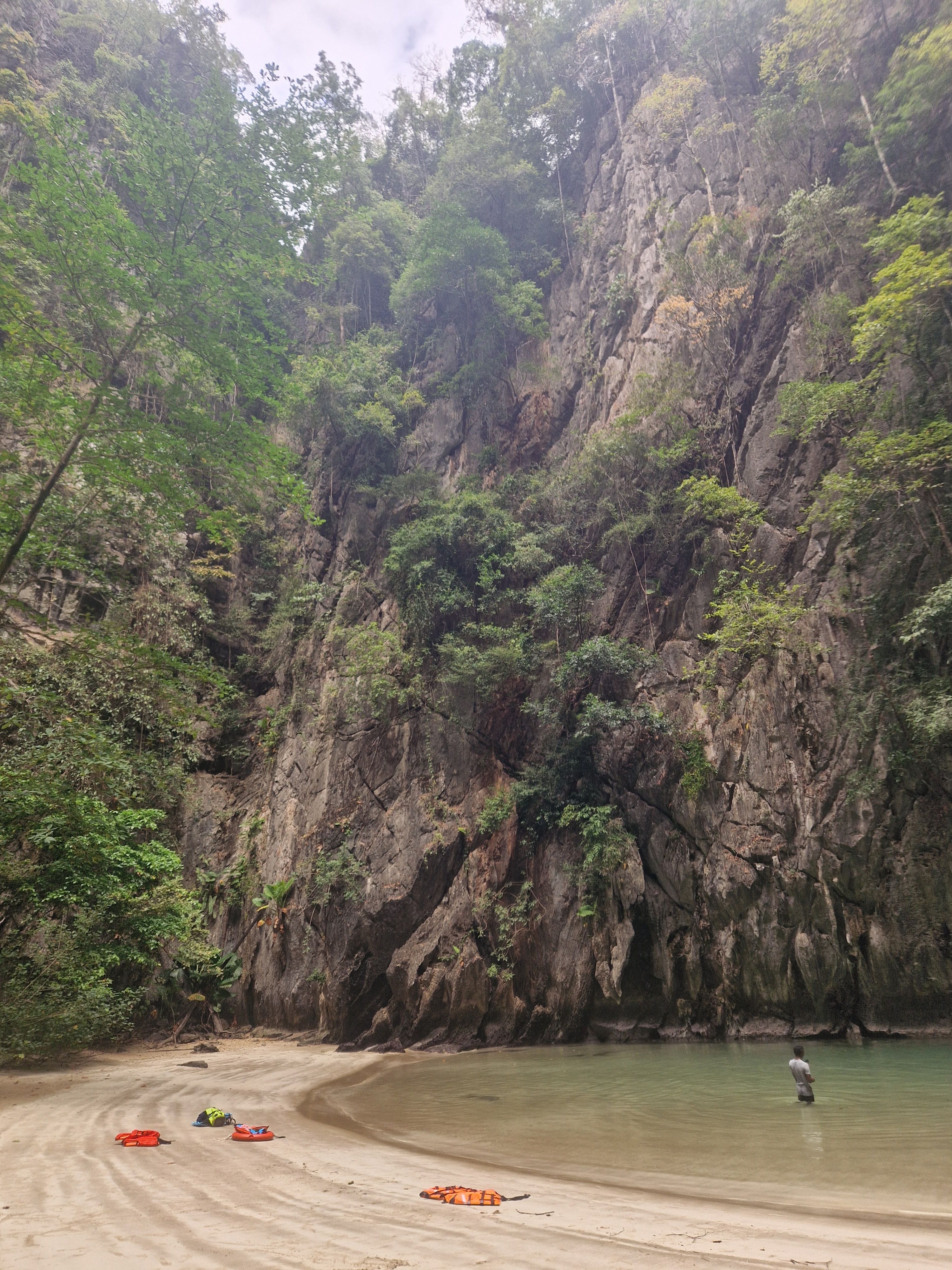 The other trip we did was to the Emerald cave on the other side of the island. There is a small cave only accessible by boat that you need to swim through (with a flashlight because it's completely dark in the middle) that leads to a majestic little bay with a small beach surrounded by towering cliffs and greenery. We even saw a few monkeys. The cove in only accessible through the cave and it gets very very busy during the day, which is why we went early in the morning (and also avoided the park ranger fee hehe).