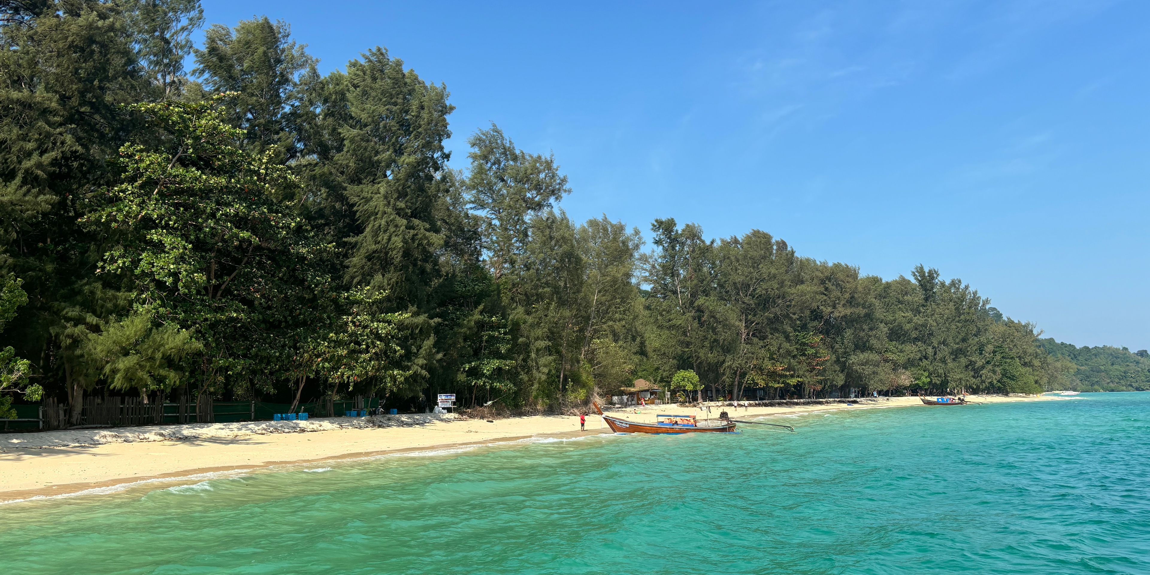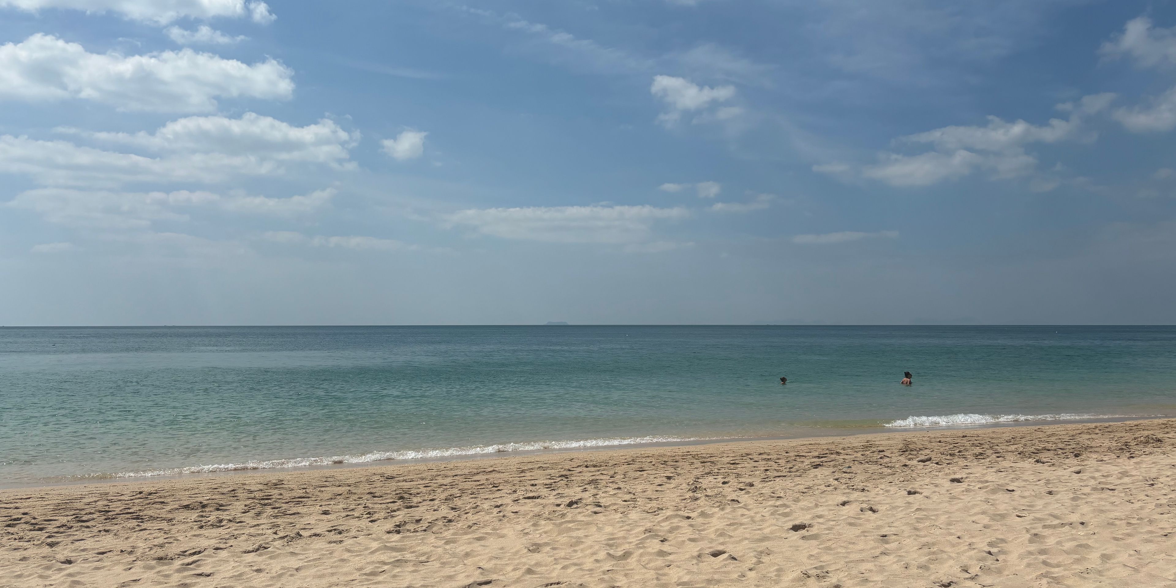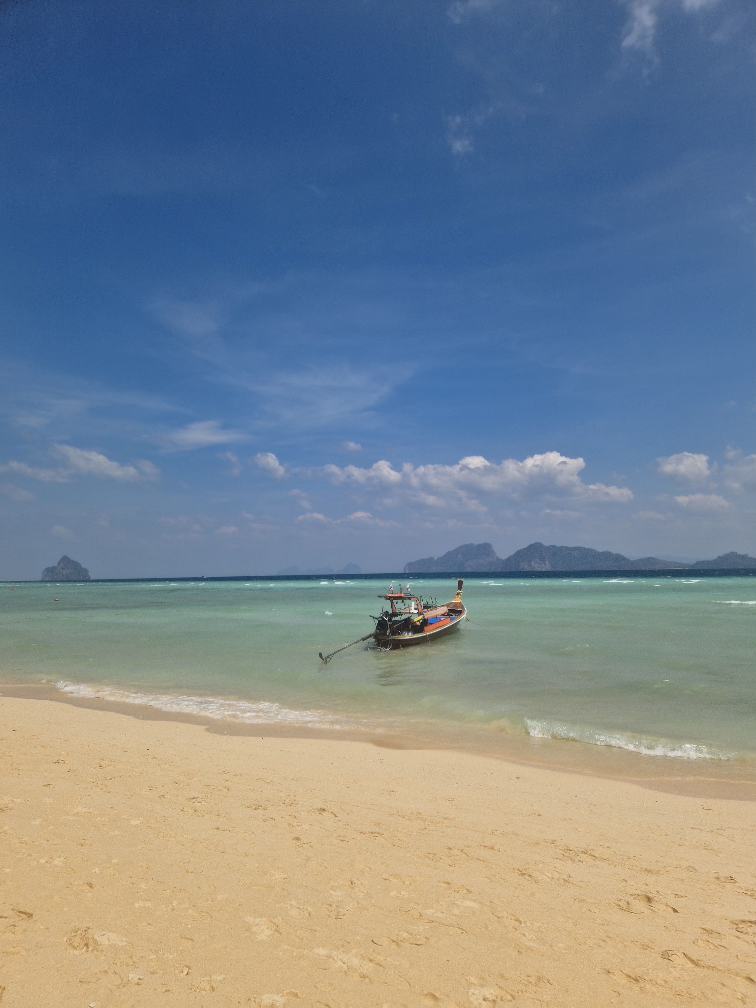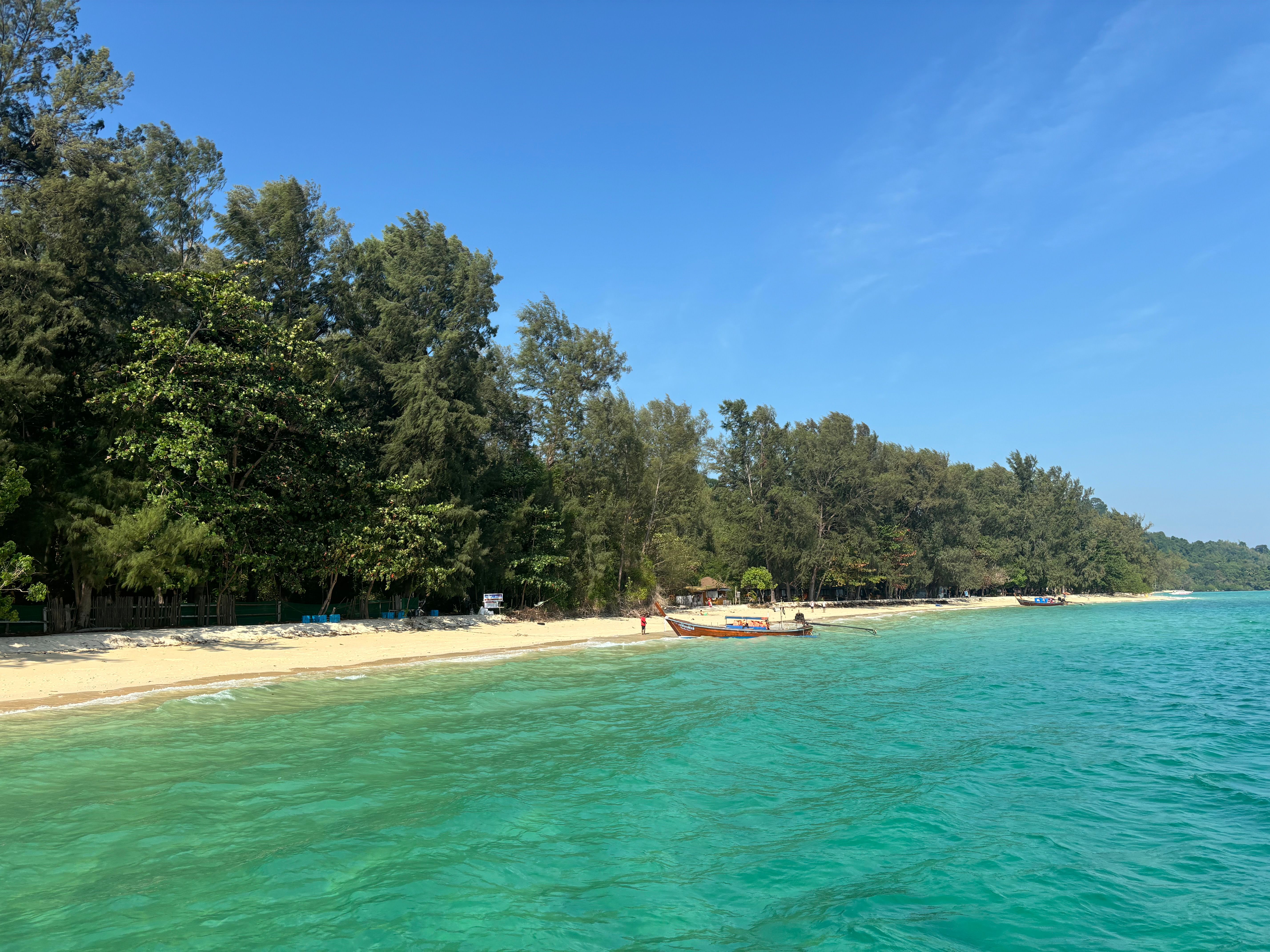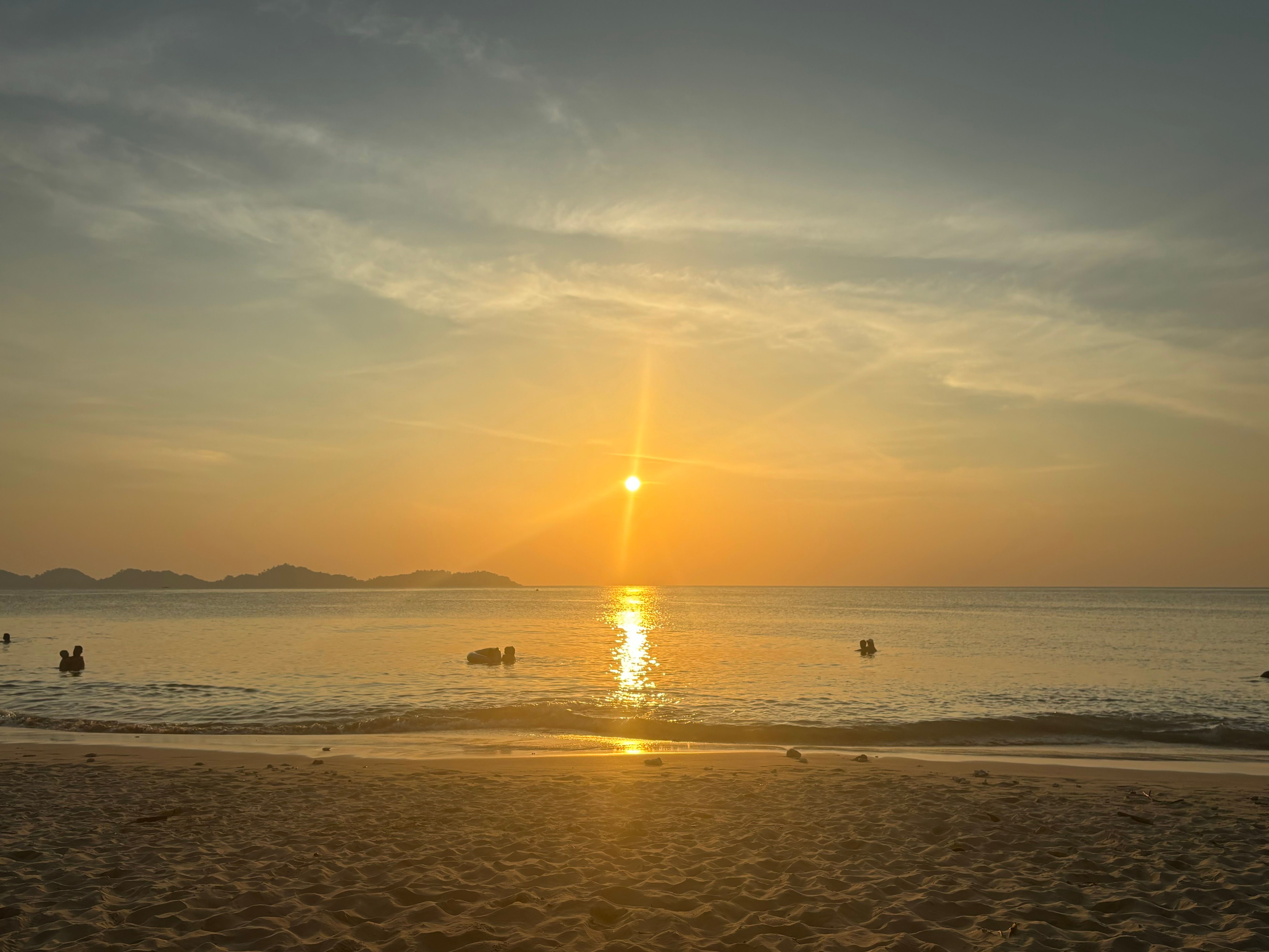 After our last day with a heavy heart we hopped on a ferry to Ko Lanta. It's a significantly bigger island with multiple beaches and much more infrastructure than the tiny island we came from. Since we only had one day on Lanta we made our way to the nearby Long Beach after a quick lunch. It was scorching hot out in the sun, and the only sliver of shade on the whole beach was a lone tree. Luckily the shade was unpopular amongst the beach-enjoyers and I managed to escape getting toasted under its shade. Still got a bit burnt in the few minutes out in the sun.
