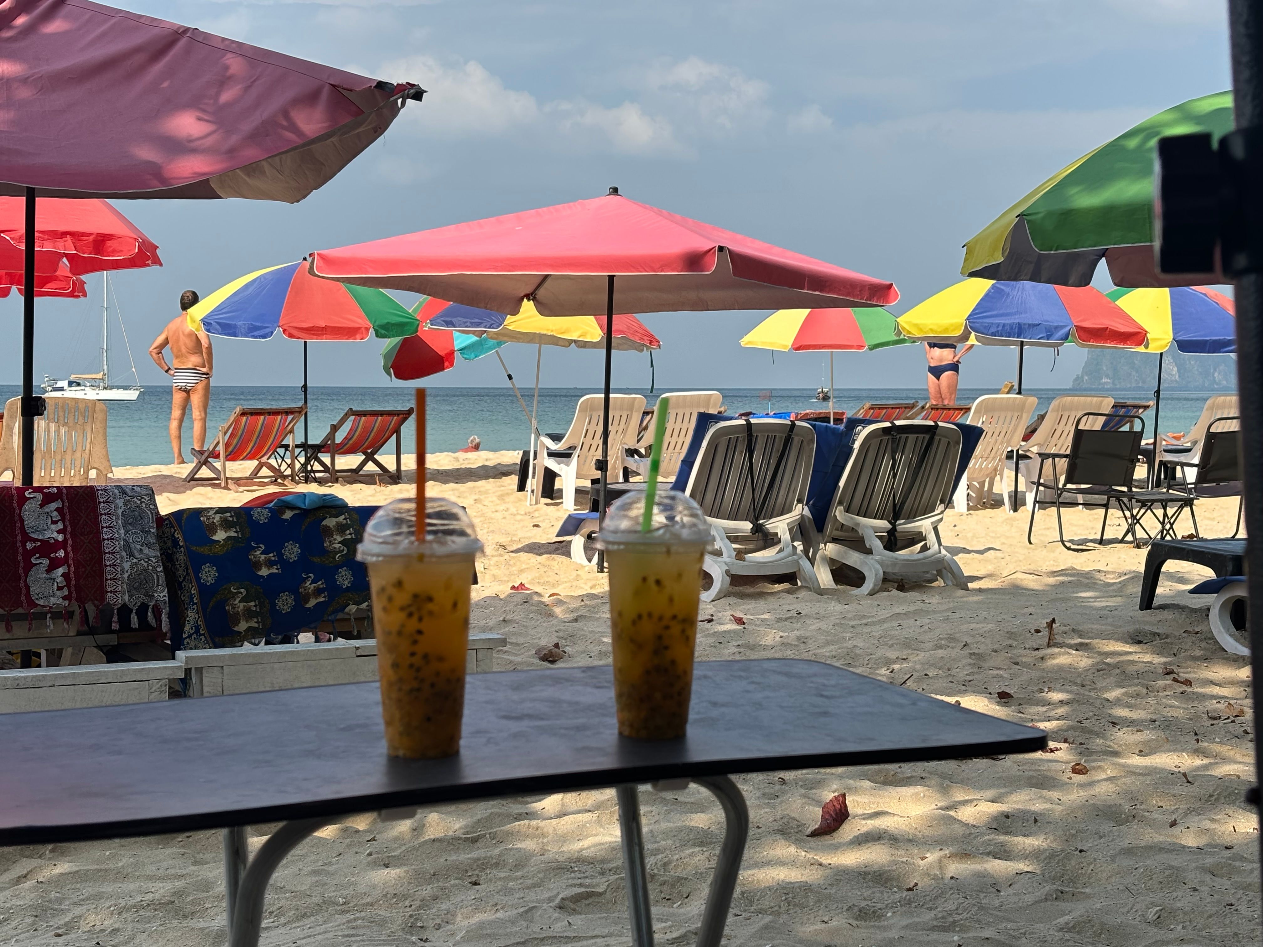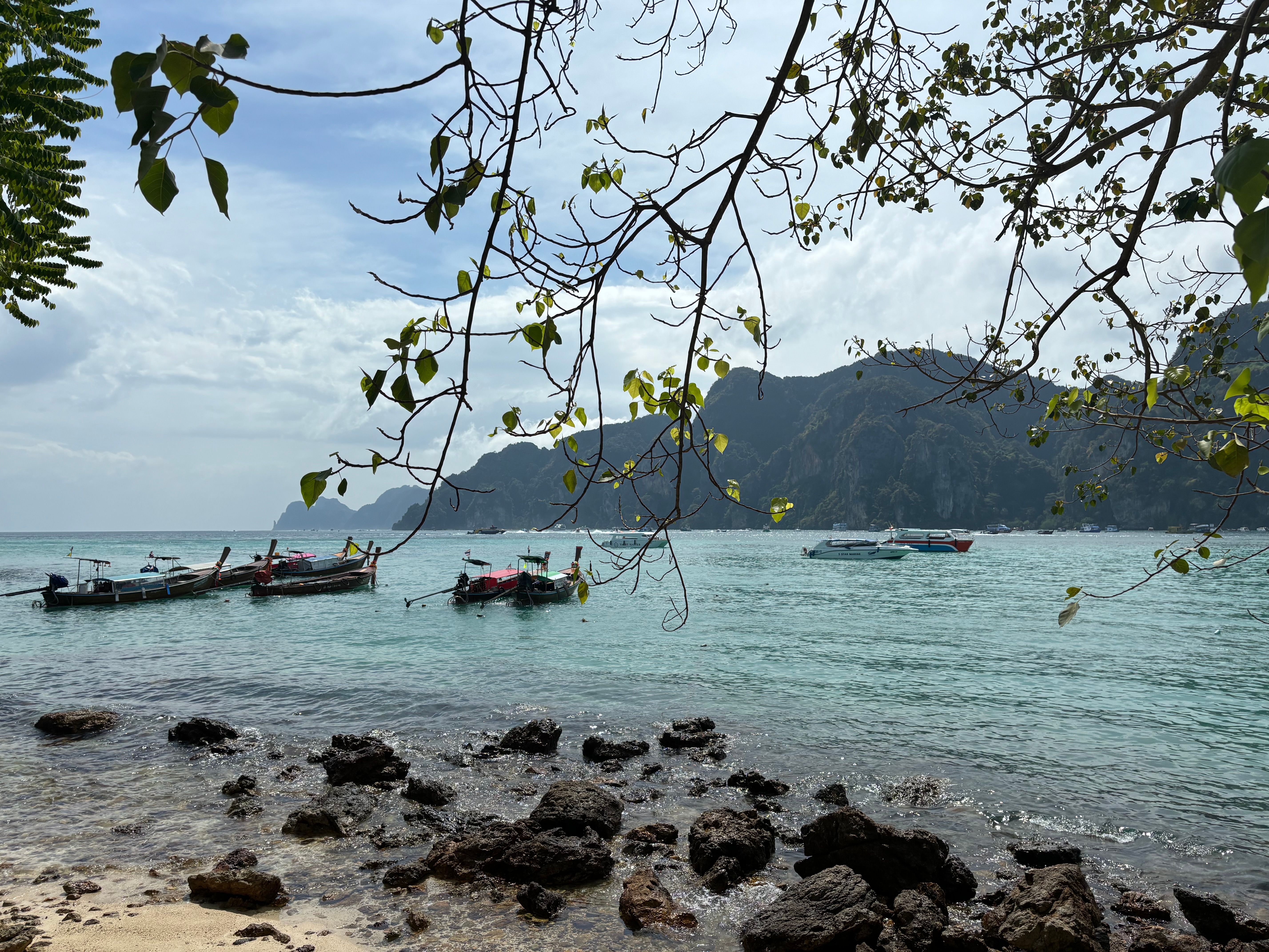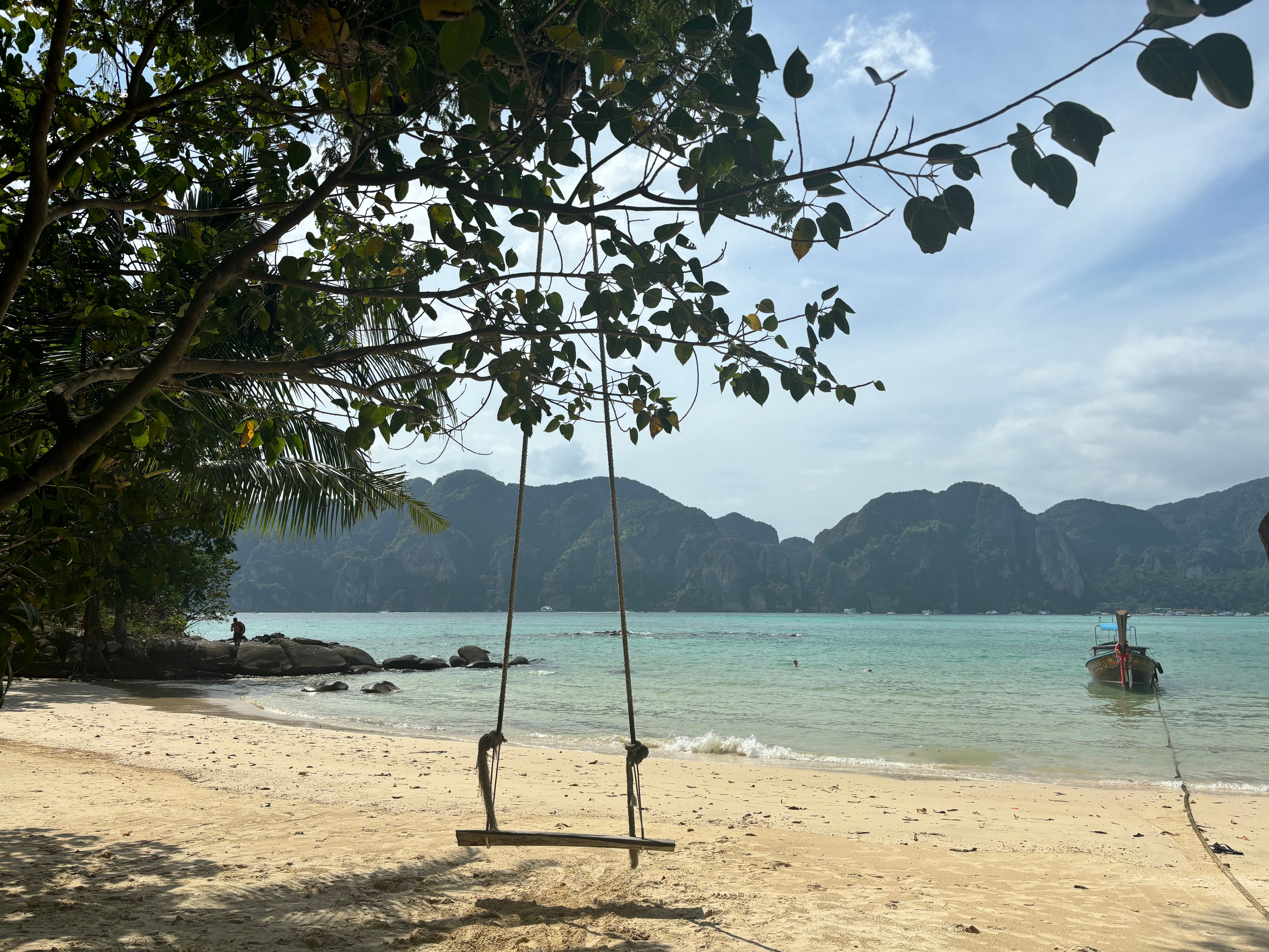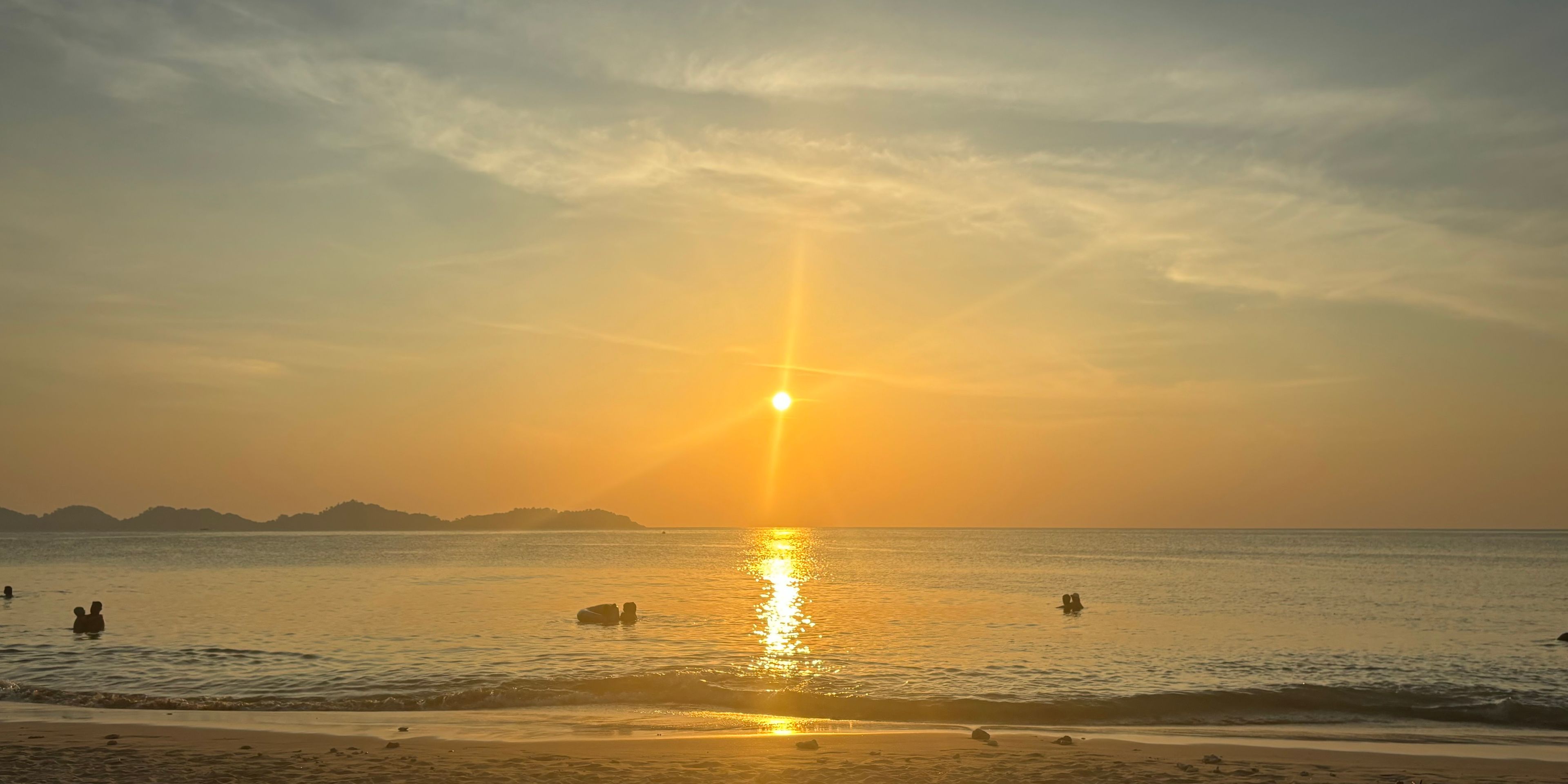 After our last day with a heavy heart we hopped on a ferry to Ko Lanta. It's a significantly bigger island with multiple beaches and much more infrastructure than the tiny island we came from. Since we only had one day on Lanta we made our way to the nearby Long Beach after a quick lunch. It was scorching hot out in the sun, and the only sliver of shade on the whole beach was a lone tree. Luckily the shade was unpopular amongst the beach-enjoyers and I managed to escape getting toasted under its shade. Still got a bit burnt in the few minutes out in the sun.