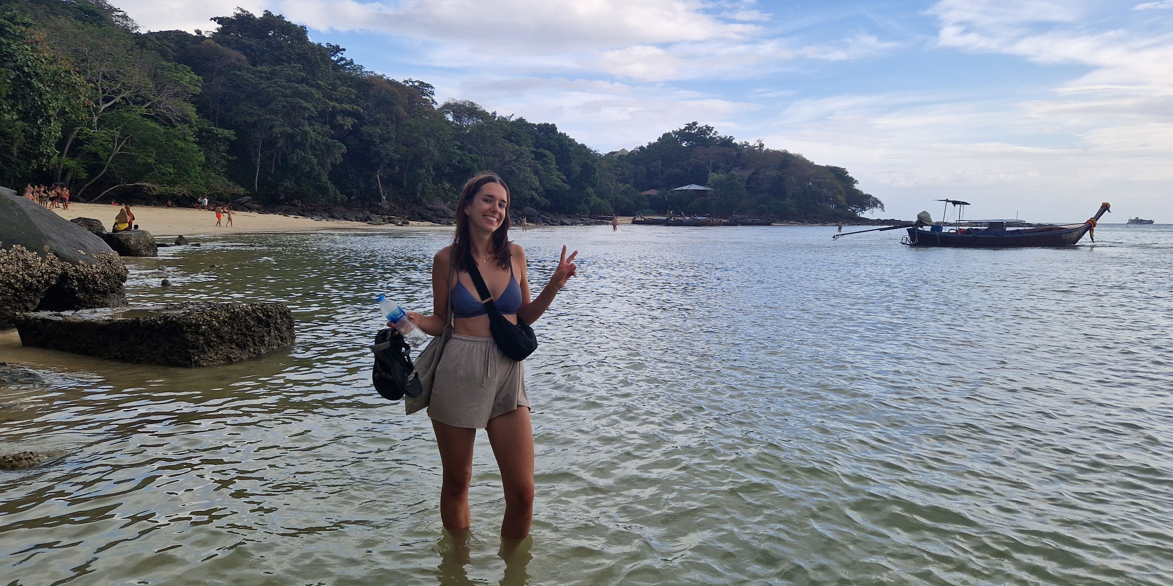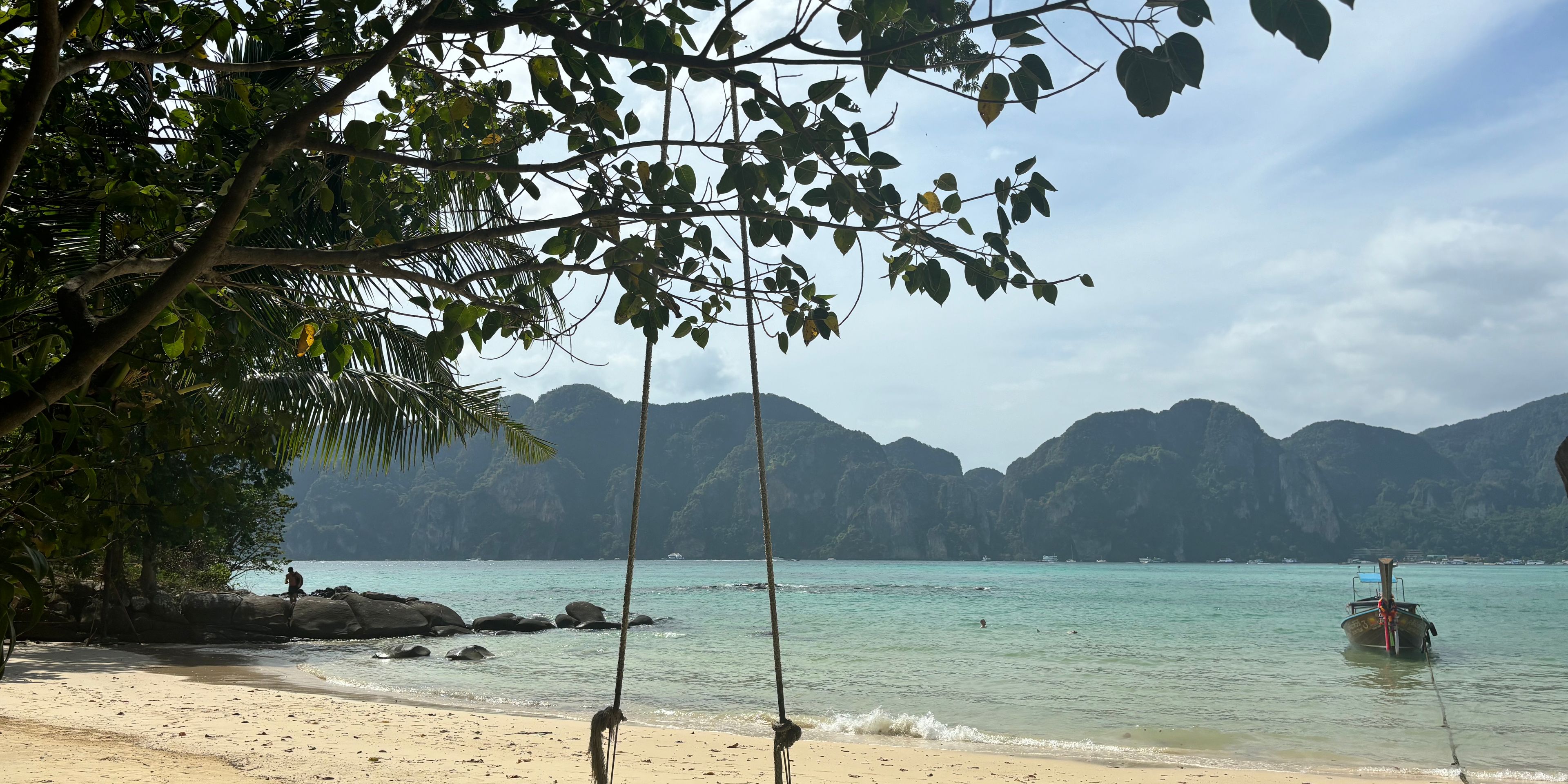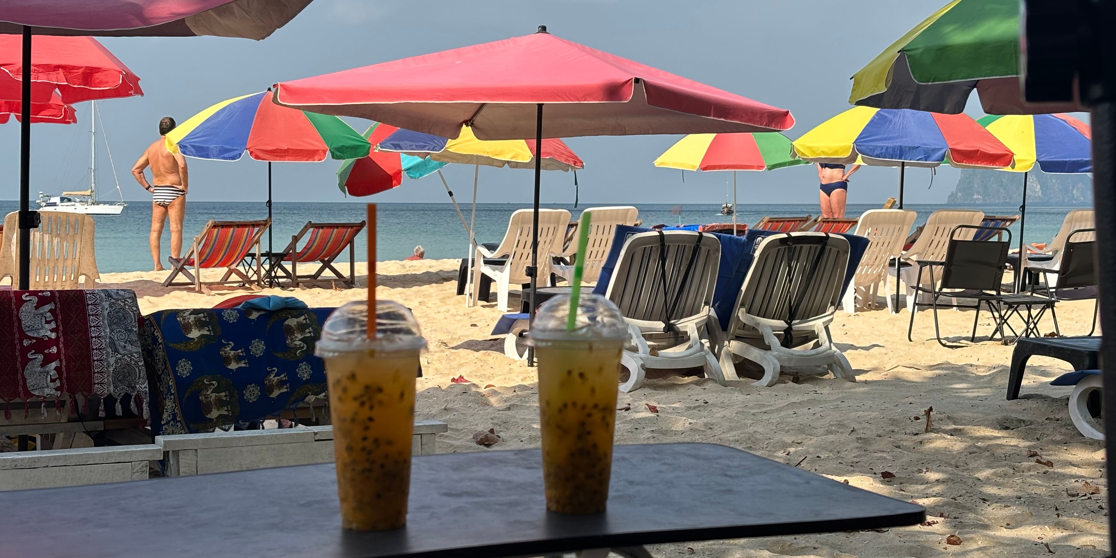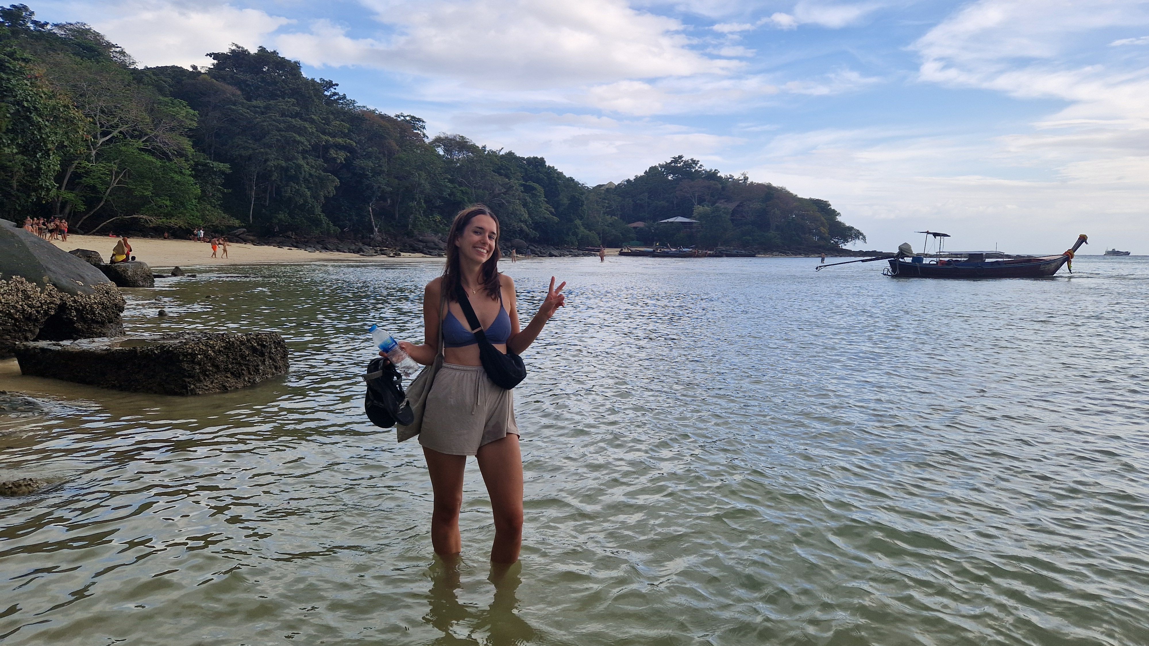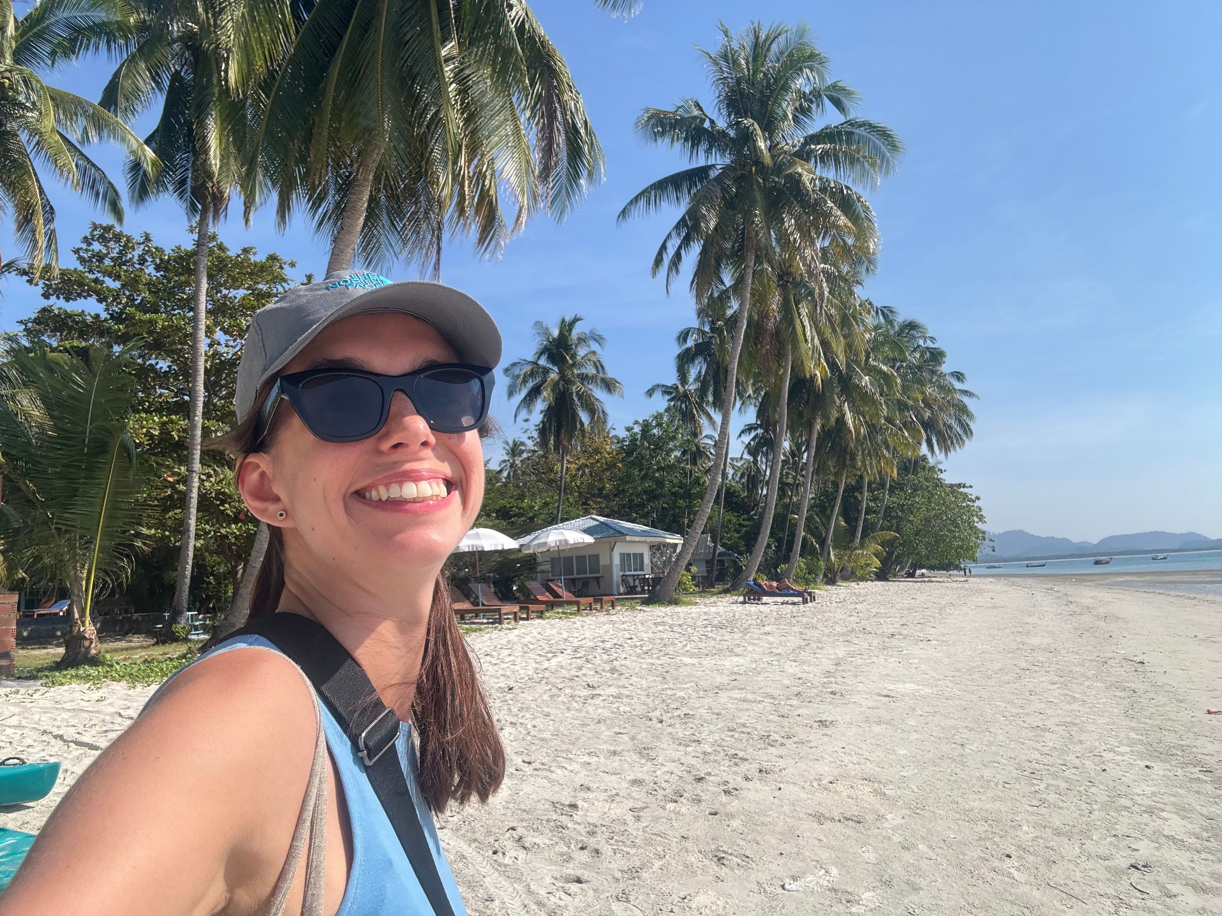 After our last day with a heavy heart we hopped on a ferry to Ko Lanta. It's a significantly bigger island with multiple beaches and much more infrastructure than the tiny island we came from. Since we only had one day on Lanta we made our way to the nearby Long Beach after a quick lunch. It was scorching hot out in the sun, and the only sliver of shade on the whole beach was a lone tree. Luckily the shade was unpopular amongst the beach-enjoyers and I managed to escape getting toasted under its shade. Still got a bit burnt in the few minutes out in the sun.