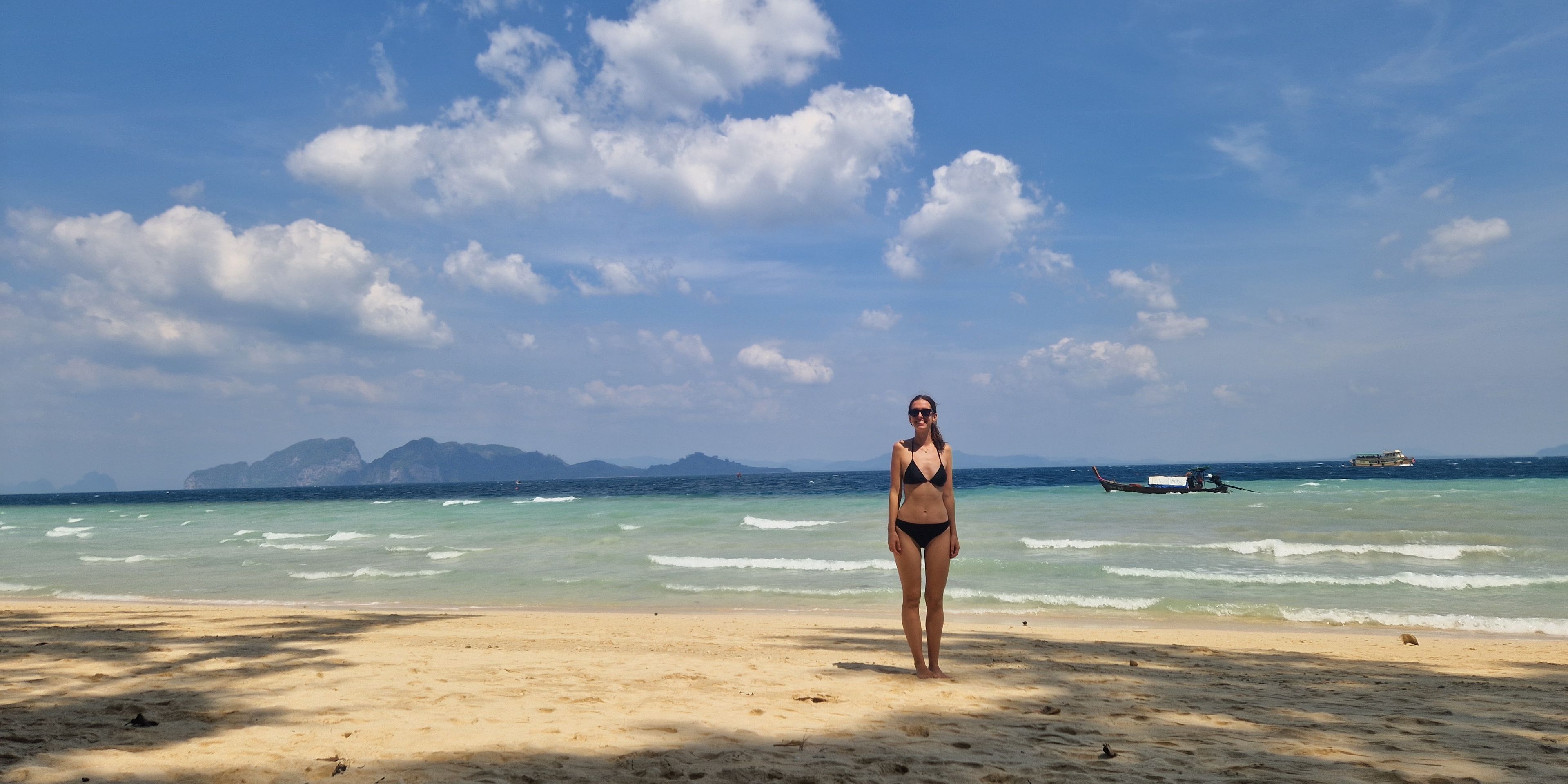 On the second day we went on a small trek to the viewpoints on top of the nearby hills. The effort was definitely worth it for the views. And also worth it for improving our condition. Once it started raining we decided to head back and after a short rest we made our way to the eastern side of the island where the more picturesque beaches can be found. The trek was truly awesome, an adventure through the jungle, peeking into the hidden beaches here and there. We ended up on a small beach called the Viking beach and spent a few hours relaxing on the beach and swimming in the sea. The weather was glorious, the clouds nowhere to be found, longtail boats floating by the shore. When it was time to go back, we decided to walk in the sea because the tide was low. Not only was it faster but we also managed to spot crabs and a starfish.