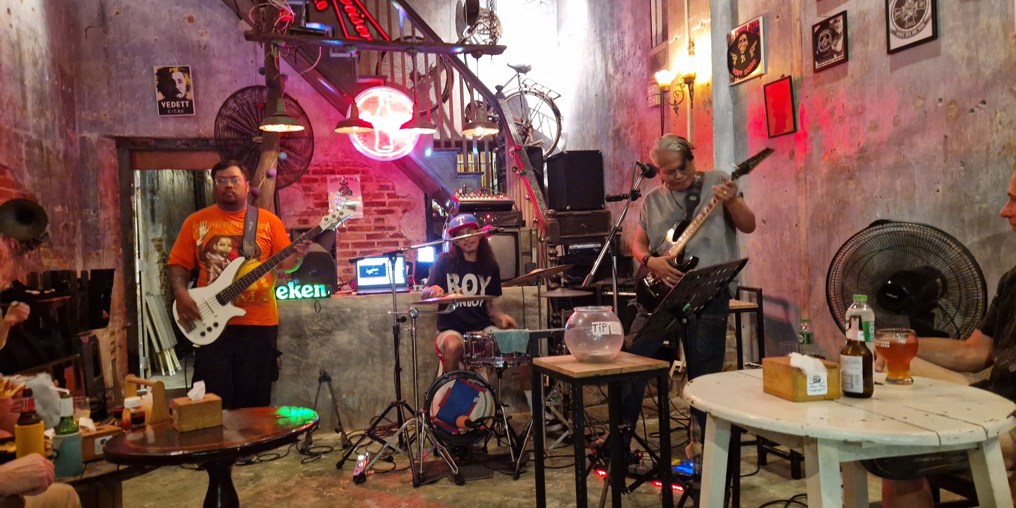 We planned two days on Phi Phi, which was completely enough for us. The next and final Thai destination was another tourist favorite, Phuket. The first two days we spent in Phuket town which was less crowded than the beaches on the western side. We really appreciated the authenticity and calmness even though it was clearly a destination for tourists. We mostly explored the old town, found some temples, museums and statues. The highlight for us was a little bar with live music. The first evening there was a band playing classic oldies, including Pink Floyd, Gary Moore and the Blues Brothers. We had such a good time we went there the next evening to listen to a different band who were playing different kinds hits such as Whitney Houston, Bryan Adams and Queen.