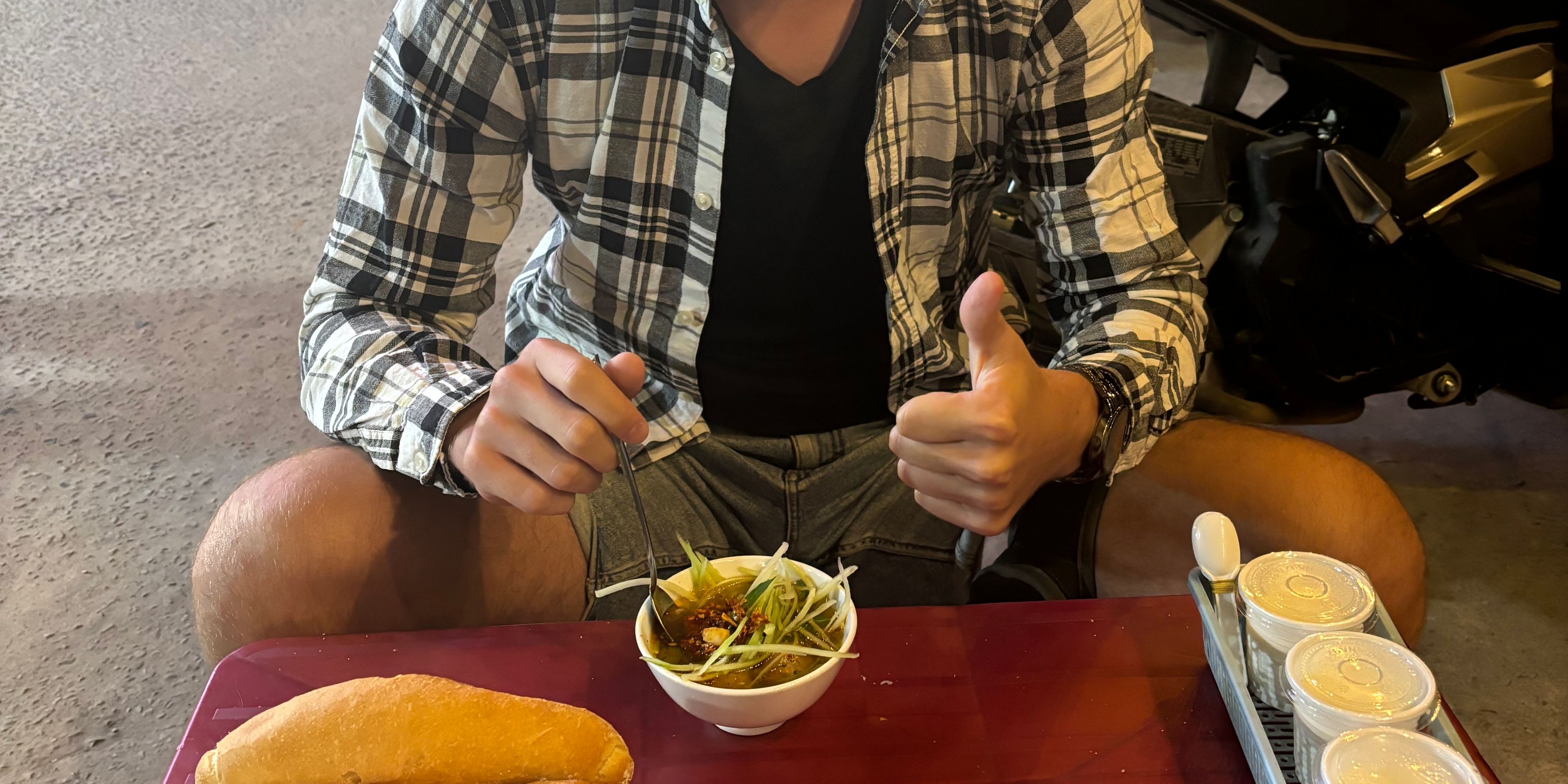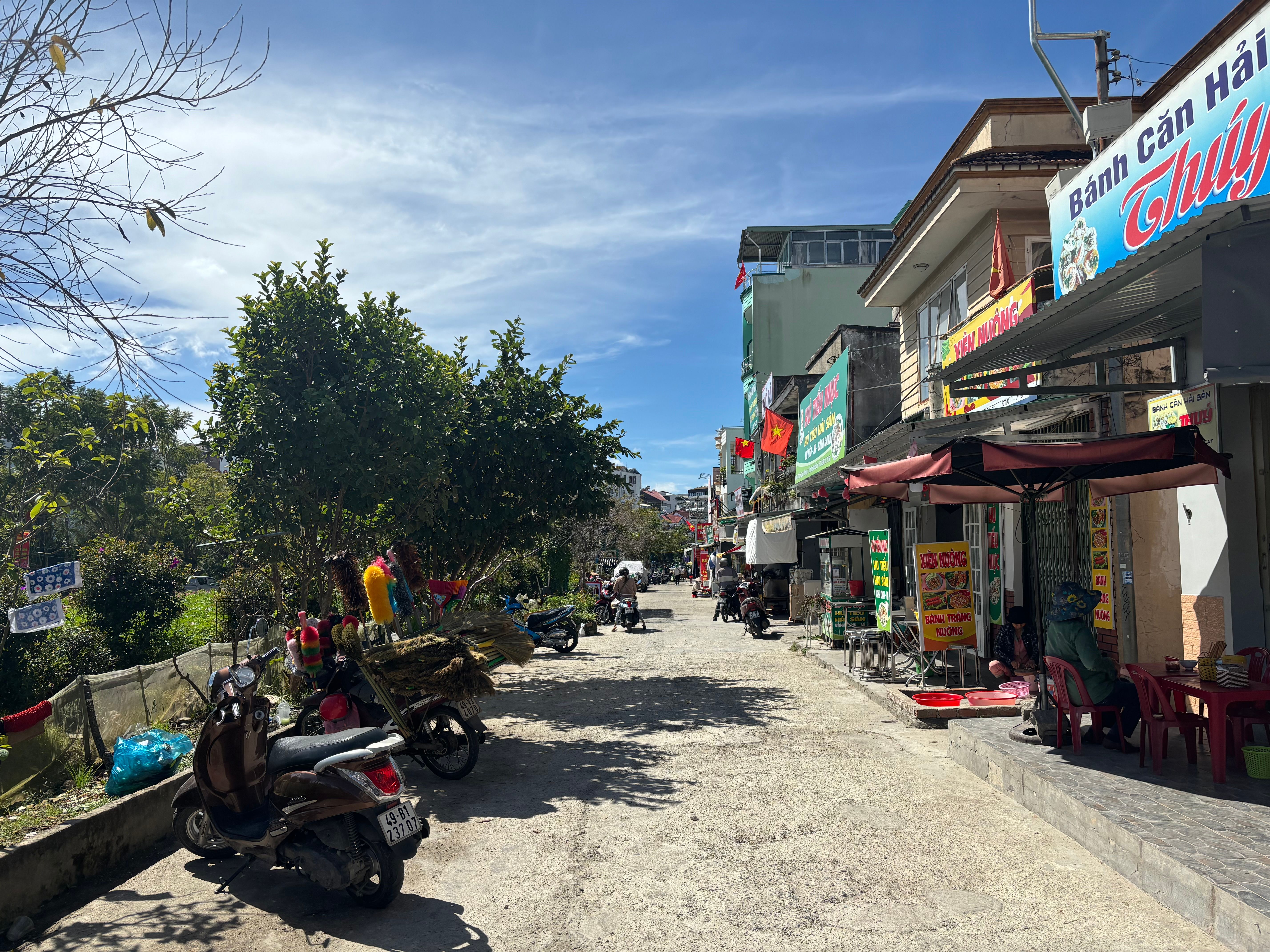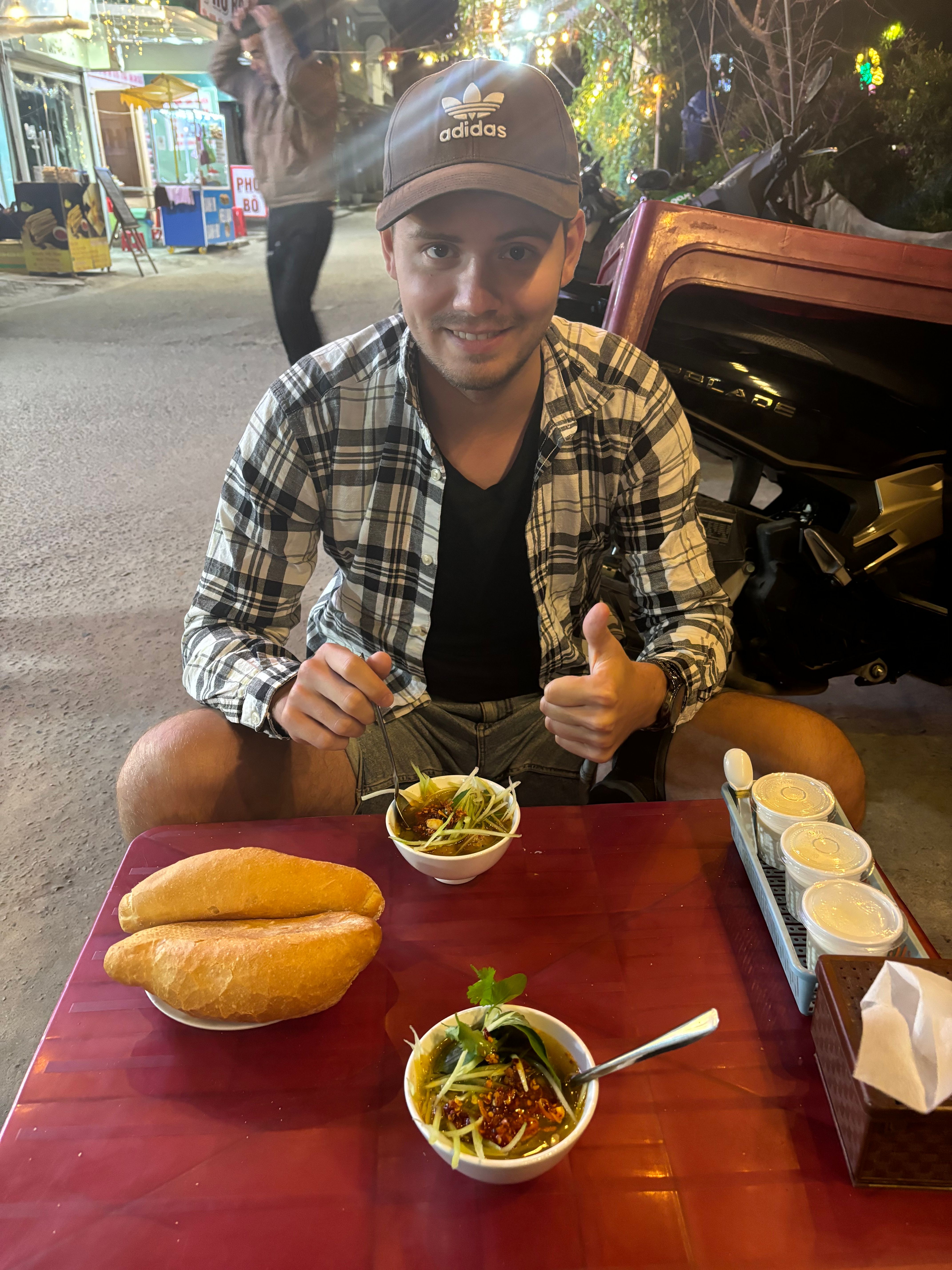 It was time to leave our Russian base early the next morning. We got picked up at our hotel and we left off for a few hour bus ride to Dalat- the city of eternal spring. It was supposed to take 2,5hours to get to our destination but due to a roadblock, we needed to take a last minute detour resulting in a 4 hour ride instead. What a ride it was! Probably the most bumpy one ever, we were literally jumping on our seats as our driver was racing and recklessly overtaking on the hilly turns. Vietnamese bus drivers’ worst nightmare clearly is not being the first one on the road. The adventurous ride was a bit nauseating but also fun and allowed us to peek into the daily lives of the villagers and to admire the mountainous landscapes in the morning sun. Dalat is known as „the city of eternal spring”. Due to its mild climate and slightly cooler temperatures, it makes a perfect environment for the flowers to bloom all year long. It was pretty hard for me to imagine experiencing spring in the middle of December but I guess everything is possible in Vietnam- it really felt like a nice and sunny spring day when we arrived. We quickly checked into our homestay, had a vegetarian buffet lunch (rating in one of the pictures below) and went on a long walk around the Dalat lake, admiring all the colorful flowers in full bloom and taking some detours to see the city sights- one of them being a huge glass artichoke, the city’s signature vegetable. Dalat is also home to banh mi xiu mai- a twist on a banh mi- this time you dip the plain baguette in a spicy sauce, it’s really delicious.