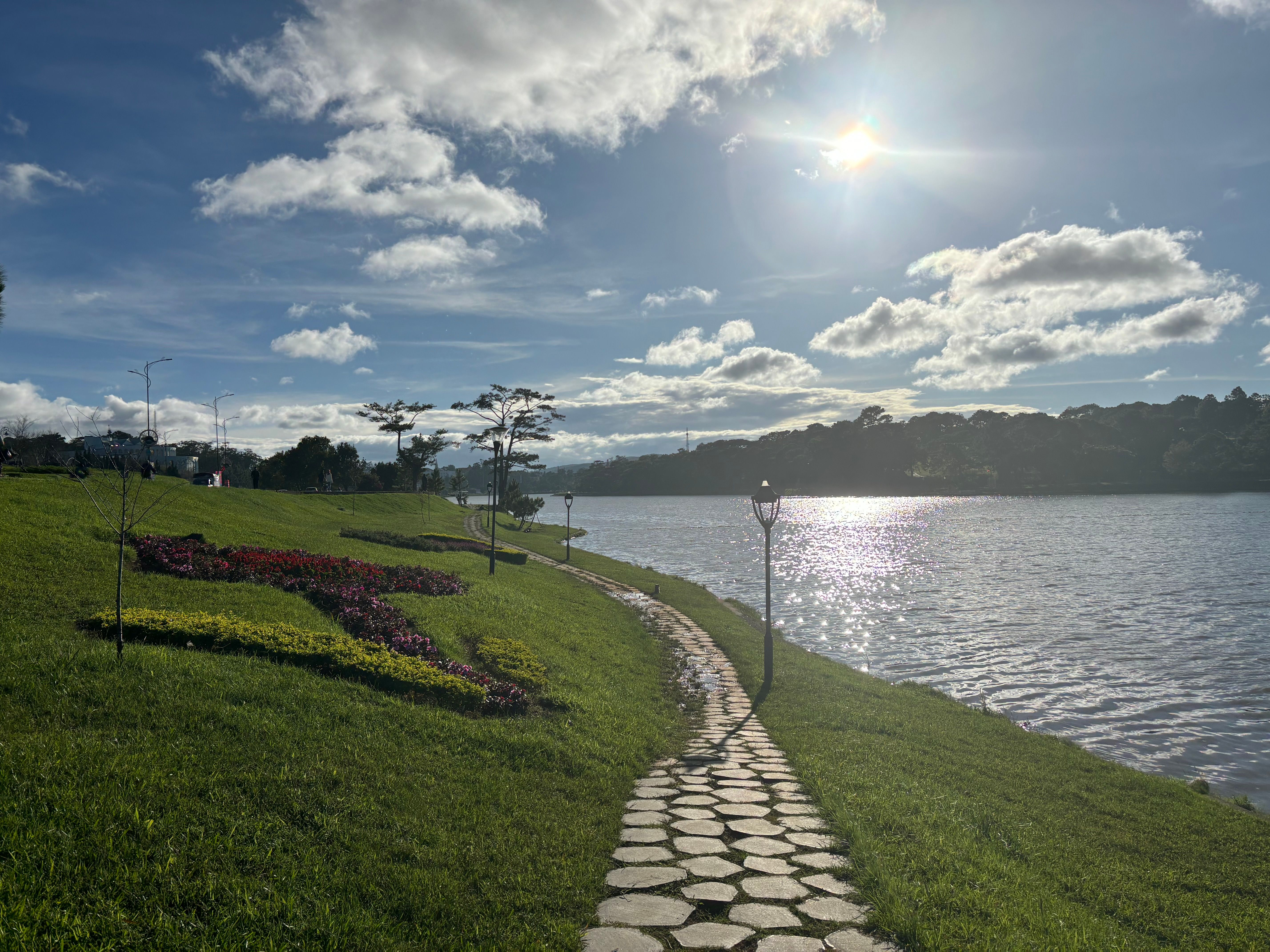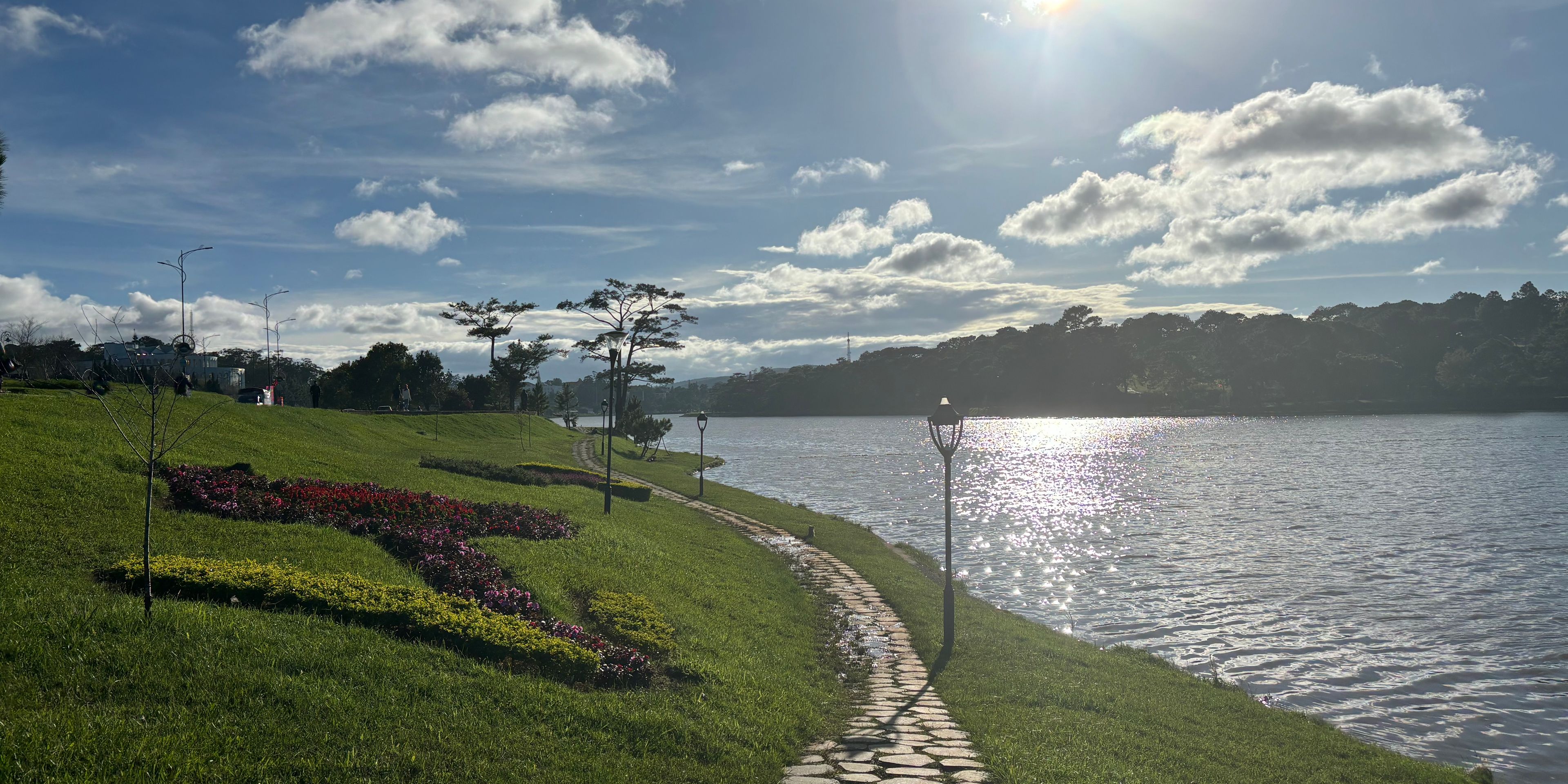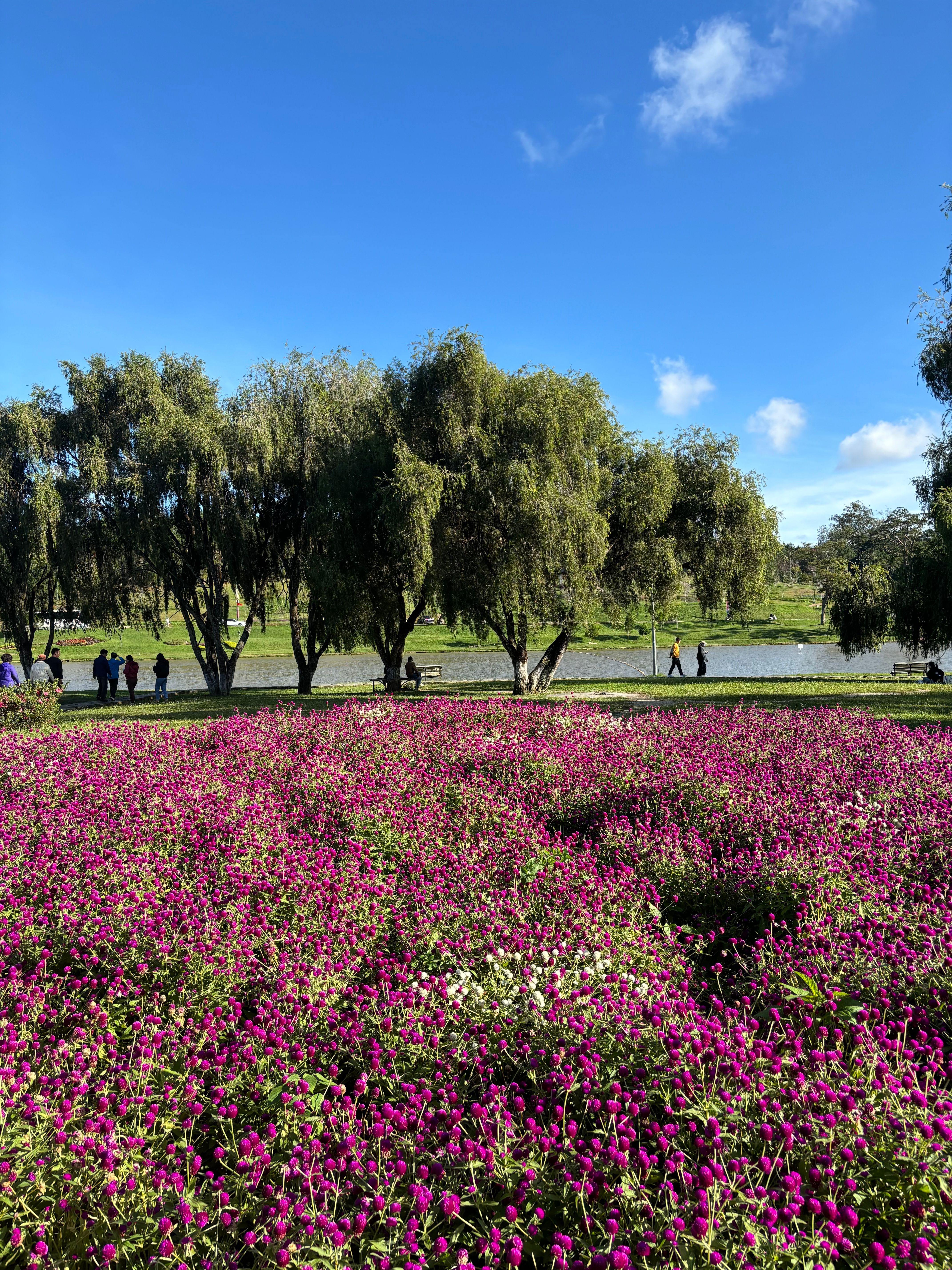 It was time to leave our Russian base early the next morning. We got picked up at our hotel and we left off for a few hour bus ride to Dalat- the city of eternal spring. It was supposed to take 2,5hours to get to our destination but due to a roadblock, we needed to take a last minute detour resulting in a 4 hour ride instead. What a ride it was! Probably the most bumpy one ever, we were literally jumping on our seats as our driver was racing and recklessly overtaking on the hilly turns. Vietnamese bus drivers’ worst nightmare clearly is not being the first one on the road. The adventurous ride was a bit nauseating but also fun and allowed us to peek into the daily lives of the villagers and to admire the mountainous landscapes in the morning sun. Dalat is known as „the city of eternal spring”. Due to its mild climate and slightly cooler temperatures, it makes a perfect environment for the flowers to bloom all year long. It was pretty hard for me to imagine experiencing spring in the middle of December but I guess everything is possible in Vietnam- it really felt like a nice and sunny spring day when we arrived. We quickly checked into our homestay, had a vegetarian buffet lunch (rating in one of the pictures below) and went on a long walk around the Dalat lake, admiring all the colorful flowers in full bloom and taking some detours to see the city sights- one of them being a huge glass artichoke, the city’s signature vegetable. Dalat is also home to banh mi xiu mai- a twist on a banh mi- this time you dip the plain baguette in a spicy sauce, it’s really delicious.