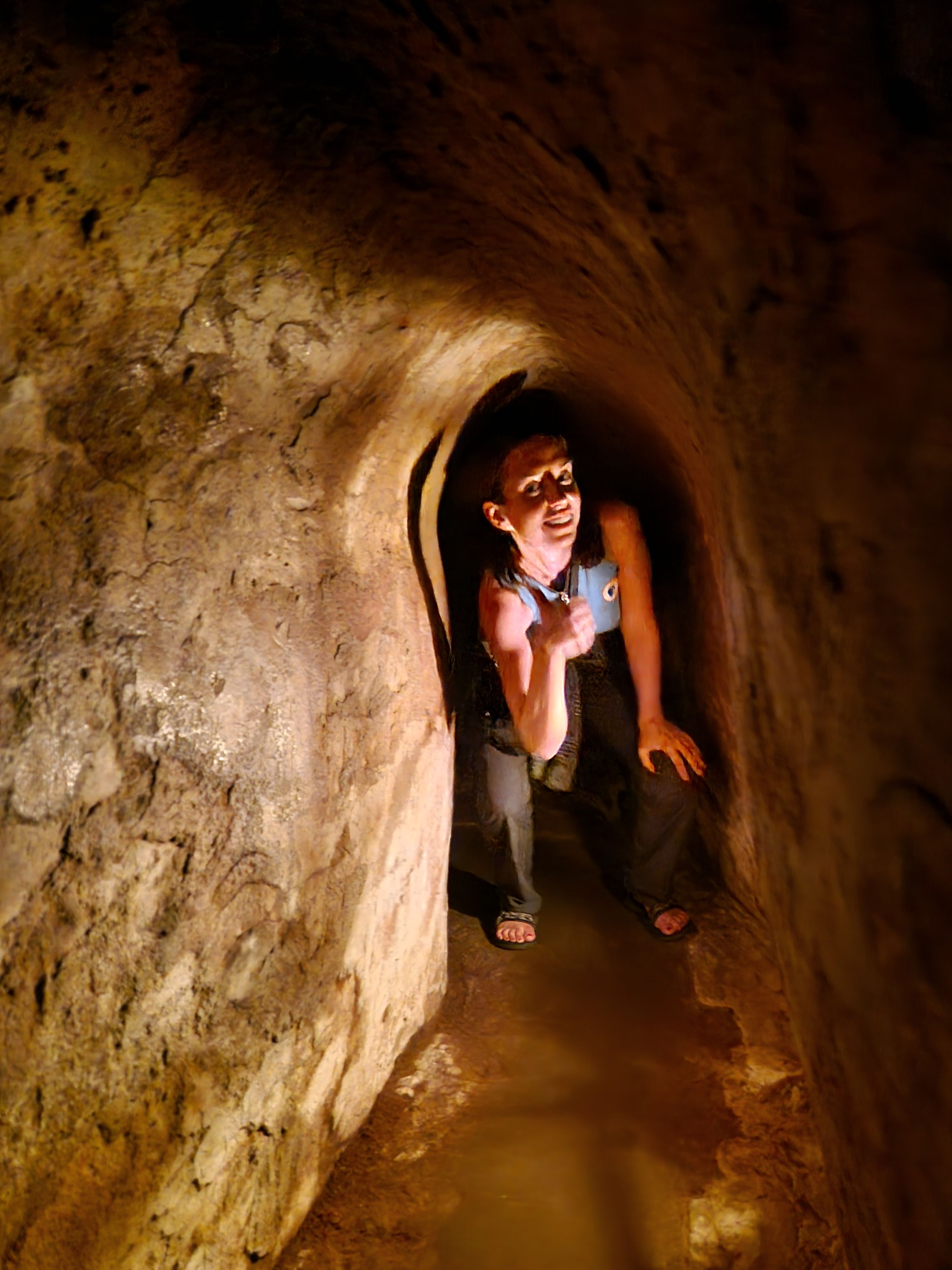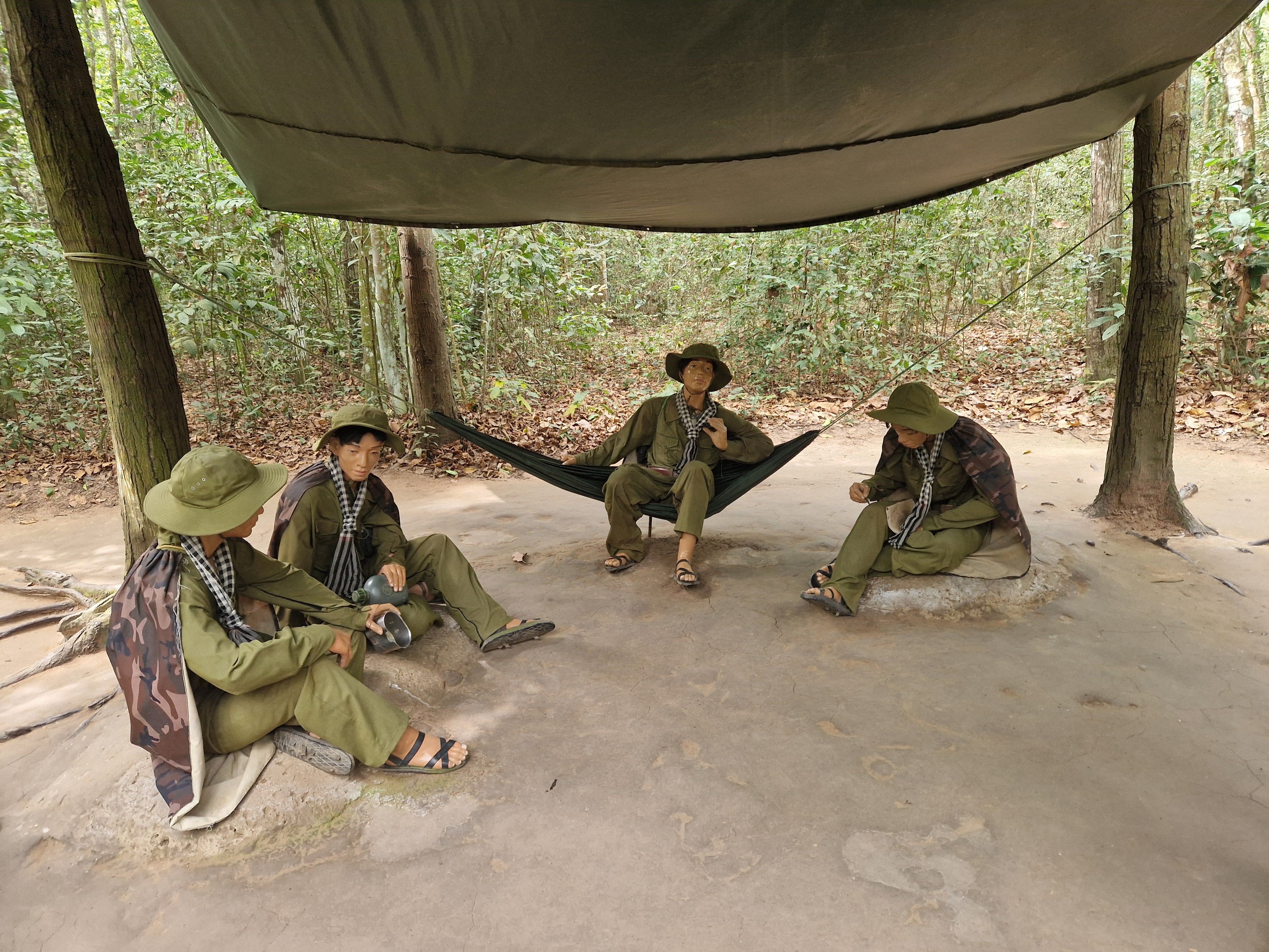 We also got to try one of the tunnels. To put into perspective the physical effort it takes to use the tunnels, our legs were giving in after only 60m of crouch-walking in the ever-narrowing tunnel passage. Granted, neither of us are in Olympic physical condition, and crawling is less tiring than crouch-walking, it still gives an idea of the effort and persistence the Vietnamese displayed to defend their independence.