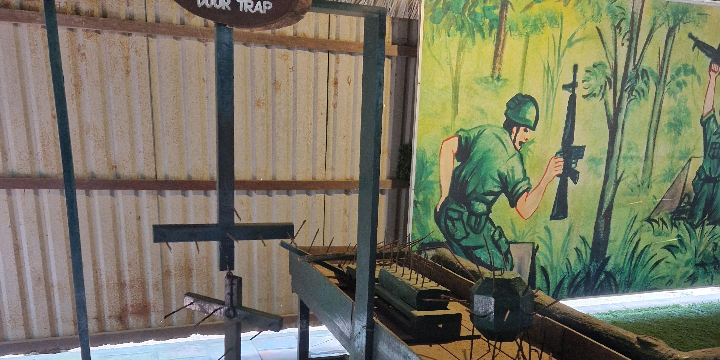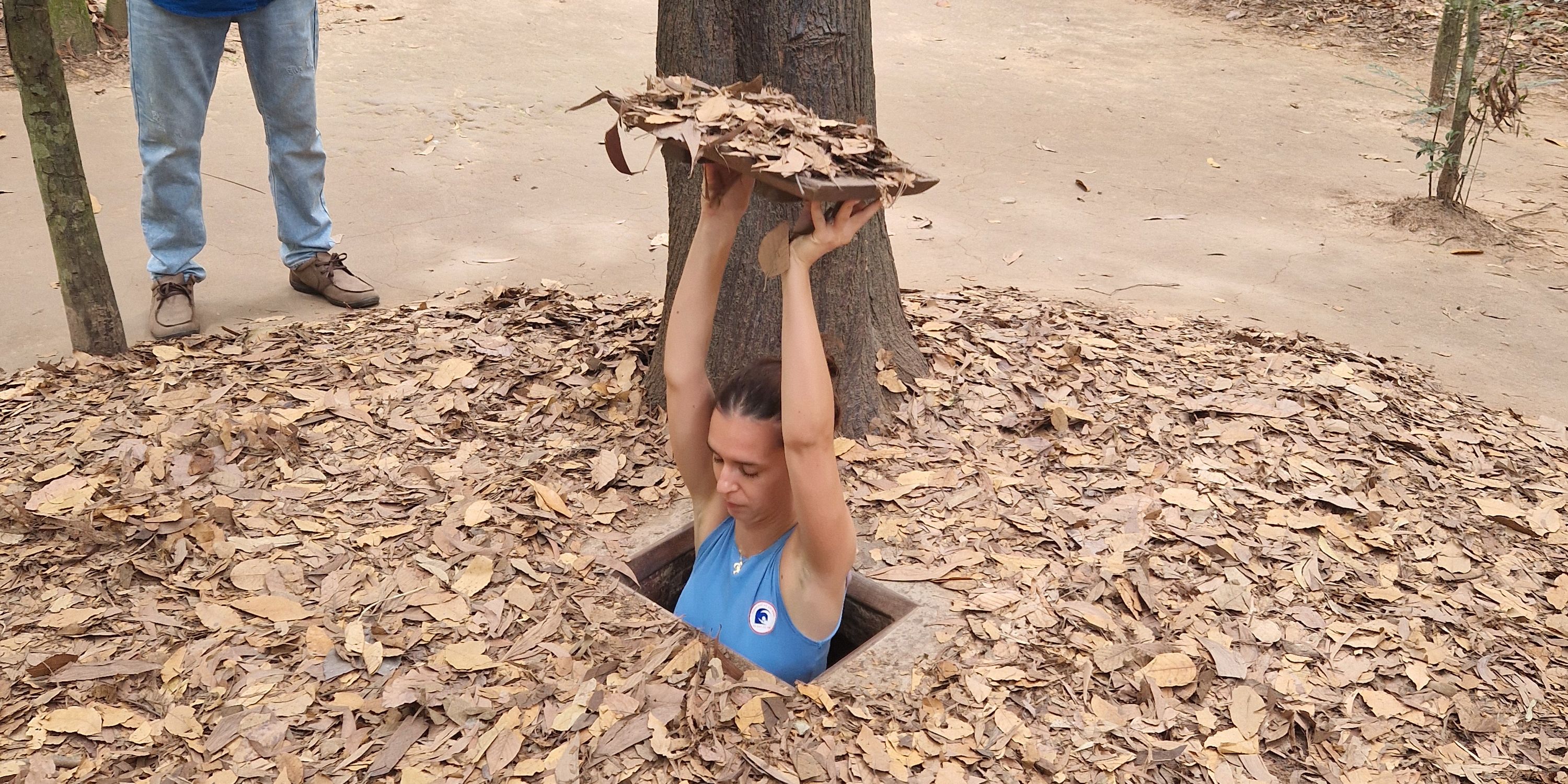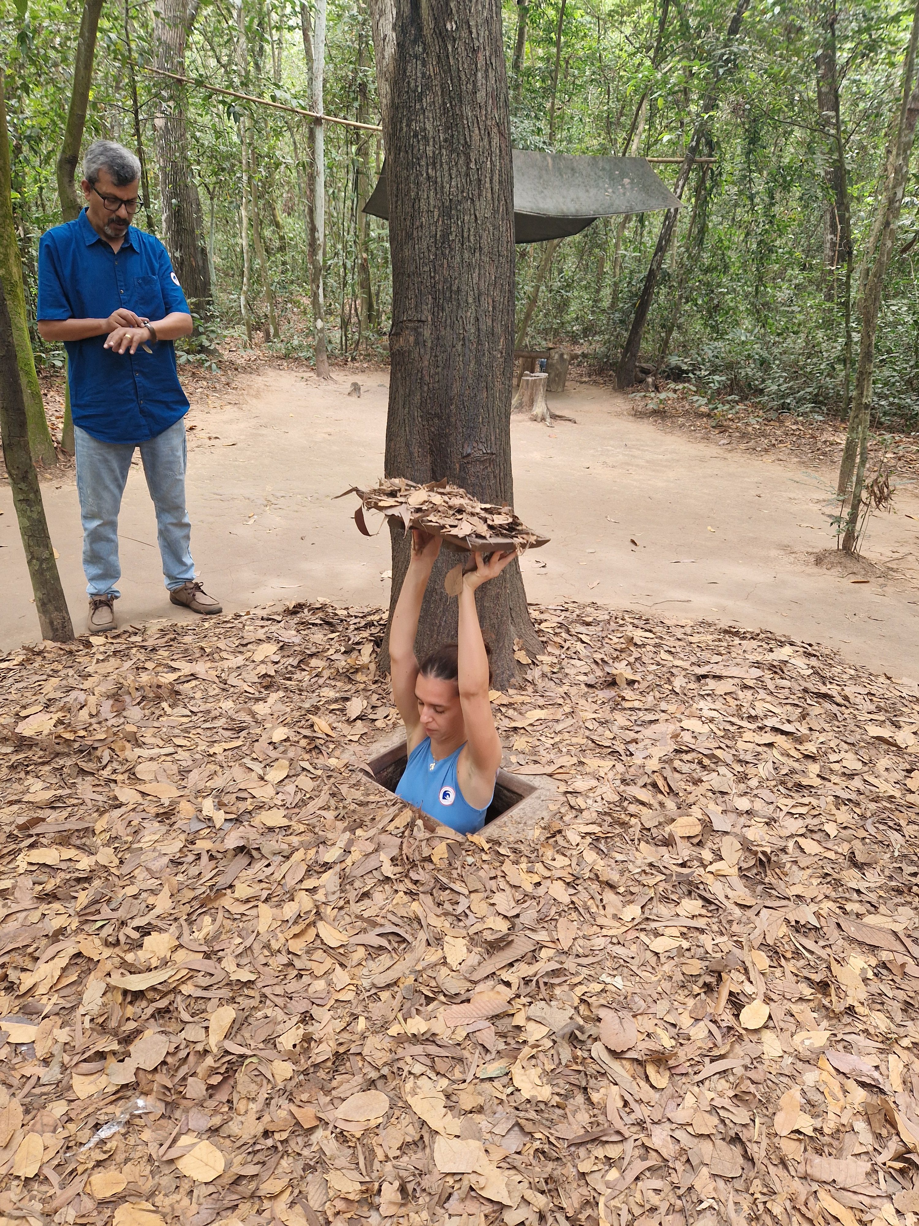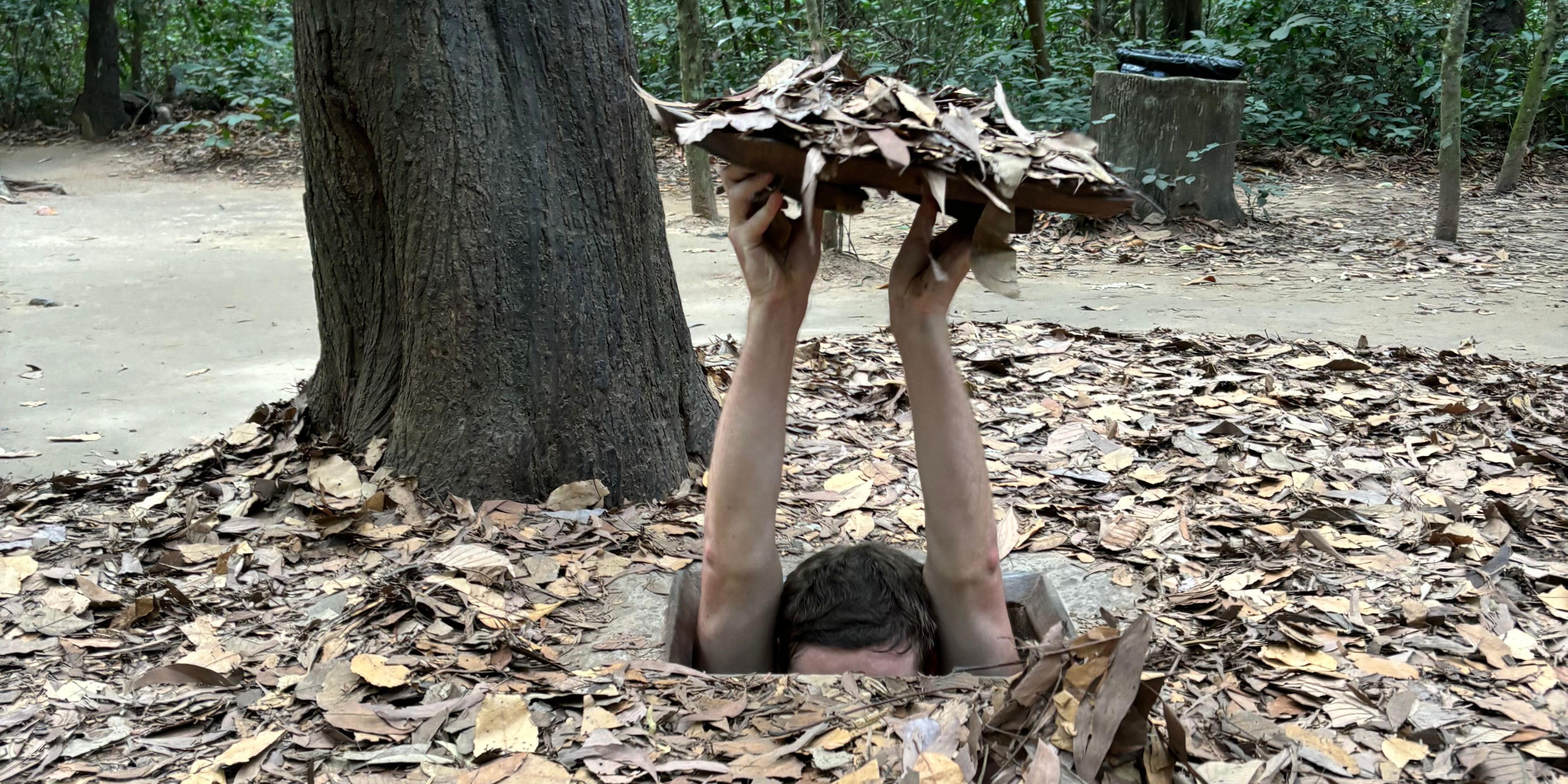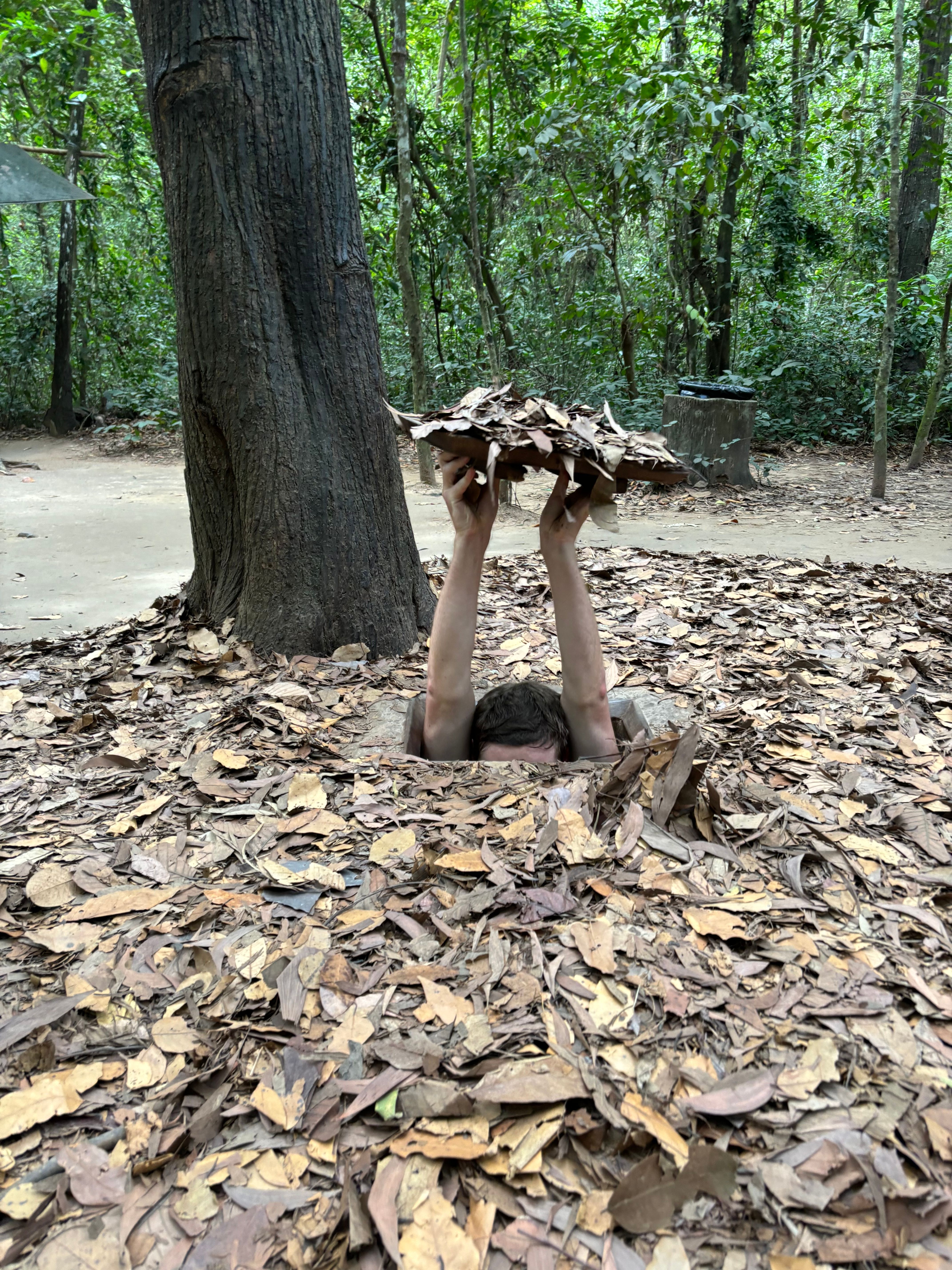 Our last stop of the tour was a hiding hole in the ground that fits one person, and is invisible to the outside when covered. The Vietnamese used these holes to great effect for ambushing the enemy. A simple but deadly resource.
