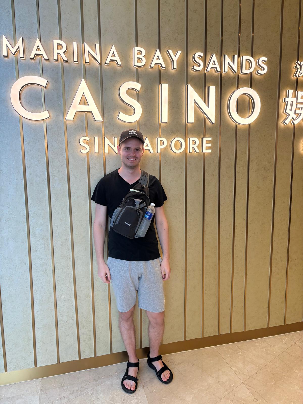Later we went to the Marina Bay Sands area- the ArtScience Museum wasn’t meant to be, but what was meant to be was the casino that Steven (Peter’s tour guide) jokingly recommended to his group. Fun fact- completely free to enter for tourists but S$200 for residents. We entered with 10 Singaporean dollars, not really intending on spending them at first. Eventually we decided to exchange our fortune for two 5$ chips. Every game was either too expensive for us to enter or just didn’t look very appealing. In the end we looked at the roulette stations. Peter asked me about what my lucky number was- it’s 24; he went for 17 (these are the days we were born for those who don’t know). One last question before the start- „You know we will lose, right?” „Yep, it’s fine.”
